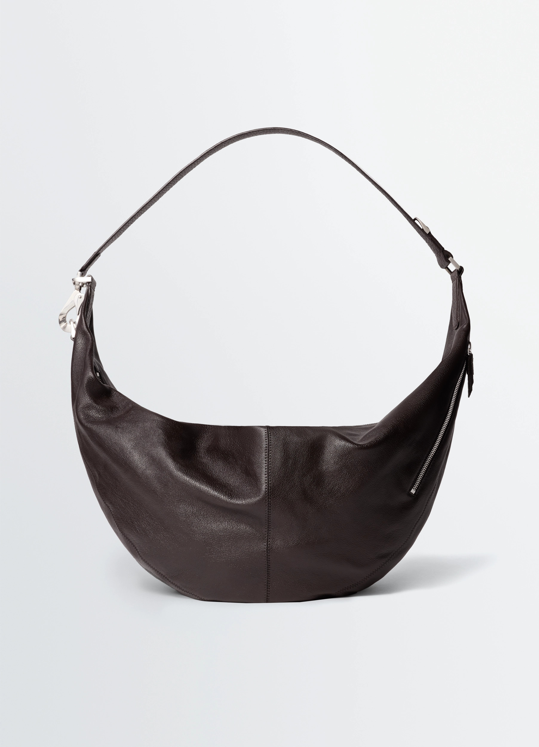 The unisex Quiver Clip line is inspired by the traditional quiver and adapts from day to night. Worn on the shoulder or crossbody, this new size L format features a vegetable-tanned leather strap adjustable with a carabiner, a metal piece specially developed by the accessories studio. Crafted in grained buffalo leather, a dense and resistant material from a certified tannery, this utilitarian bag hugs the body, an attitude essential to Lemaire accessories. The unisex Quiver Clip line is inspired by the traditional quiver and adapts from day to night. Worn on the shoulder or crossbody, this new size L format features a vegetable-tanned leather strap adjustable with a carabiner, a metal piece specially developed by the accessories studio. Crafted in grained buffalo leather, a dense and resistant material from a certified tannery, this utilitarian bag hugs the body, an attitude essential to Lemaire accessories. DETAILS Large Quiver Clip bag in grained buffalo leather Soft rounded model Hand, shoulder and cross-body carry Adjustable grained leather strap with metal buckles and carabiner Zip fastening with metal slider and leather puller Side zipped pocket with metal slider and leather puller Tone-on-tone zigzag stitching details Silver-tone hardware Dimensions: Length: 57 cm Height: 27 cm Depth: 9 cm Handle drop: 34 cm Strap length: 60 cm Made in Spain Style: BG0197 LL0171 Large Quiver Clip bag in grained buffalo leather Soft rounded model Hand, shoulder and cross-body carry Adjustable grained leather strap with metal buckles and carabiner Zip fastening with metal slider and leather puller Side zipped pocket with metal slider and leather puller Tone-on-tone zigzag stitching details Silver-tone hardware Dimensions: Length: 57 cm Height: 27 cm Depth: 9 cm Handle drop: 34 cm Strap length: 60 cm Made in Spain Style: BG0197 LL0171 CARE Main Material: 100% cow second Material: 100% buffalo Do not wash Do not bleach Do not tumble dry Do not iron Professional leather clean only Main Material: 100% cow second Material: 100% buffalo Do not wash Do not bleach Do not tumble dry Do not iron Professional leather clean only