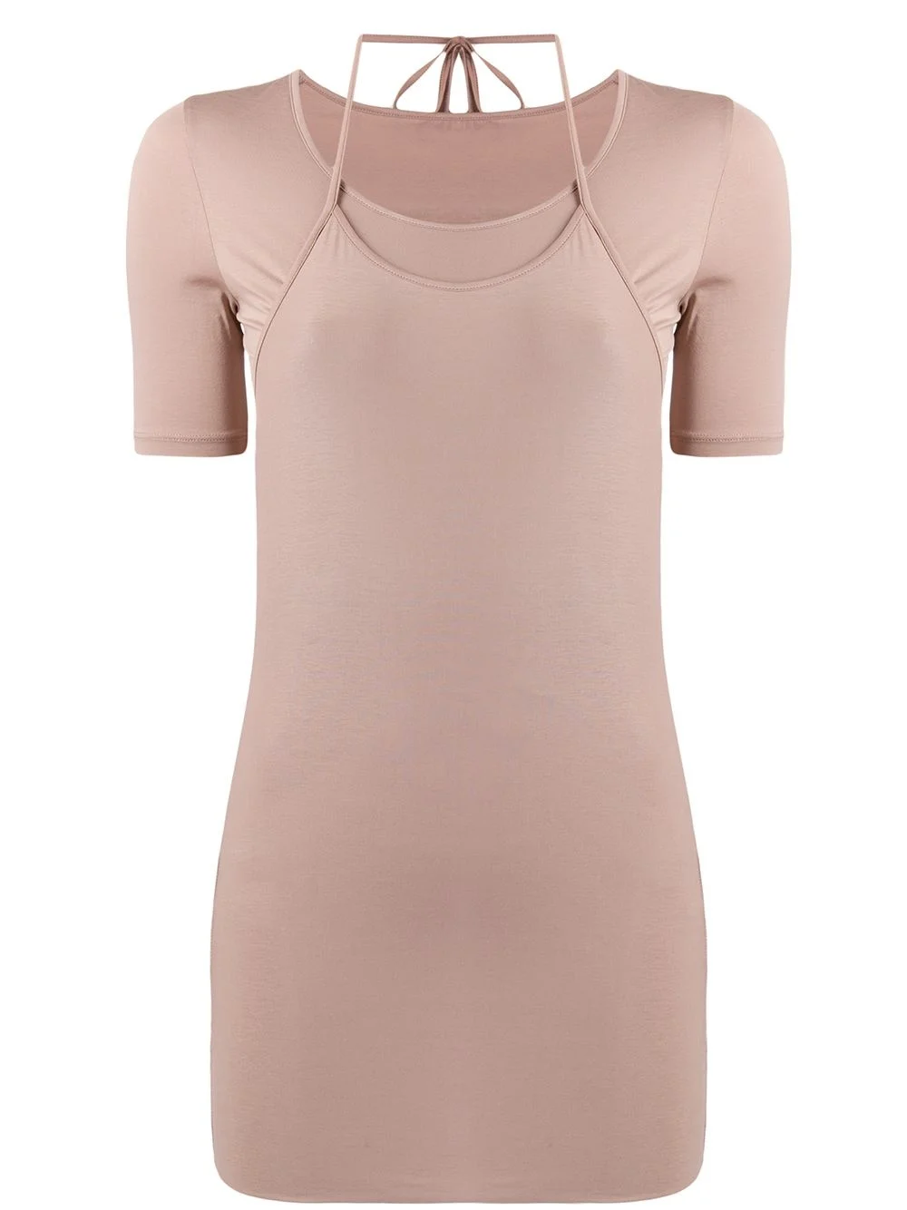 layered slim-fit T-Shirt Sand nude cotton blend layered slim-fit T-Shirt from LEMAIRE featuring a layered design, a scoop neck, a back tie fastening, short sleeves and a straight hem. Imported Composition Cotton 93%, Spandex/Elastane 6% SIZE & FIT Model measurements Height 5 ft 10 in(1.78 m) Bust/Chest 33.07 in(84 cm) Hips 36.61 in(93 cm) Waist 24.8 in(63 cm) FittingInformation This piece fits true to size. We recommend you get your regular size Cut for a slim fit Made with a lightweight stretch fabric Washing instructions Machine Wash