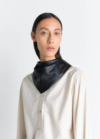 Crafted in supple nappa lamb leather with a glossy finish and lined with silk, this triangular scarf is ideal for mid-season. Crafted in supple nappa lamb leather with a glossy finish and lined with silk, this triangular scarf is ideal for mid-season. DETAILS Nappa lambskin triangular scarf Light model to tie Silk twill lining Made in Turkey Style : TA0019 LL0161 Nappa lambskin triangular scarf Light model to tie Silk twill lining Made in Turkey Style : TA0019 LL0161 CARE Main Fabric: 100% Lamb Main Lining: 100% Silk Do not wash Do not bleach Do not tumble dry Do not iron Professional leather clean only Main Fabric: 100% Lamb Main Lining: 100% Silk Do not wash Do not bleach Do not tumble dry Do not iron Professional leather clean only