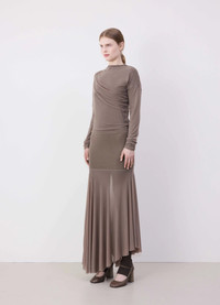 This pair of leggings are a new addition to the LEMAIRE vestiaire. They are made in extra-stretchy compact second skin jersey for a fitted shape and a soft hand. A perfect layering piece, they feature a circle cut-out at the heel to allow the legging to comfortably cover half of the foot. This detail offers styling options such as pairing them with open shoes. The waistband is elasticated so the leggings will keep their shape and stay in place throughout the day. DETAILS - Extra-stretchy jersey - Heel cut-out - Elasticated waist Made in Portugal Style: PA1144 LJ1023 FABRICS & CARE Main Fabric: 86% Polymaide/Nylon / 14% Elasthanne Soft wash 30° Do not bleach Do not tumble dry Cool ironing Do not dry clean Dry flat