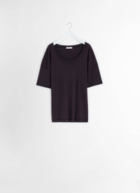 This classic t-shirt is a staple of LEMAIRE’s wardrobe. It is made of mid-weight cotton jersey woven into a flexible rib. It has a loose cut that is slightly fitted at the hips, an open crewneck and dropped shoulders. Details include a self-rib collar and flat-lock finishings on the shoulders. The Model is 176cm / 5' 9½'' ft and is wearing a size 36 (S). This classic t-shirt is a staple of LEMAIRE’s wardrobe. It is made of mid-weight cotton jersey woven into a flexible rib. It has a loose cut that is slightly fitted at the hips, an open crewneck and dropped shoulders. Details include a self-rib collar and flat-lock finishings on the shoulders. The Model is 176cm / 5' 9½'' ft and is wearing a size 36 (S). DETAILS - Loose fit - Ribbed collar Made in Portugal Style: TS0002 LJ1016 - Loose fit - Ribbed collar Made in Portugal Style: TS0002 LJ1016 CARE Main Fabric: 100% Cotton Soft wash 30° Do not bleach Do not tumble dry Cool ironing Do not dry clean Dry flat Main Fabric: 100% Cotton Soft wash 30° Do not bleach Do not tumble dry Cool ironing Do not dry clean Dry flat
