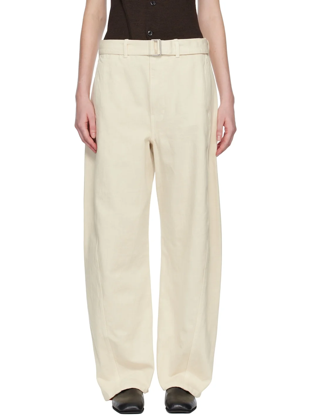 Non-stretch denim jeans. · Belt loops · Detachable cinch belt at waist · Four-pocket styling · Zip fly · Logo patch at back waistband Supplier color: Denim snow clay 100% cotton. Made in Morocco 252646F069005