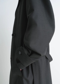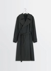 This oversized trench coat is crafted in a tropical wool-blend suiting fabric characterized by its mottled look and dense, supple hand. Its material and removable flannel lining make it a versatile piece in the Lemaire wardrobe. The model is 177 cm tall and is wearing a size 36 (S). This oversized trench coat is crafted in a tropical wool-blend suiting fabric characterized by its mottled look and dense, supple hand. Its material and removable flannel lining make it a versatile piece in the Lemaire wardrobe. The model is 177 cm tall and is wearing a size 36 (S). DETAILS Oversized trench coat in tropical poly wool Long cut Partially lined model with removable flannel lining and buttons Tailored collar with buttonhole Double-breasted button closure Long sleeves finished off with button tabs Side pockets Belt loops at the back Removable belt with buckle and ring Buttoned back vent Inside patch pocket on removable lining Made in Hungary Style : CO1127 LF414 Oversized trench coat in tropical poly wool Long cut Partially lined model with removable flannel lining and buttons Tailored collar with buttonhole Double-breasted button closure Long sleeves finished off with button tabs Side pockets Belt loops at the back Removable belt with buckle and ring Buttoned back vent Inside patch pocket on removable lining Made in Hungary Style : CO1127 LF414 CARE Main Material: 85% Wool 15% Polyamide Main Lining: 100% Cotton Second Lining: 56% Cotton 44% Viscose Third Lining: 100% Cotton Main Material: 85% Wool 15% Polyamide Main Lining: 100% Cotton Second Lining: 56% Cotton 44% Viscose Third Lining: 100% Cotton