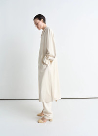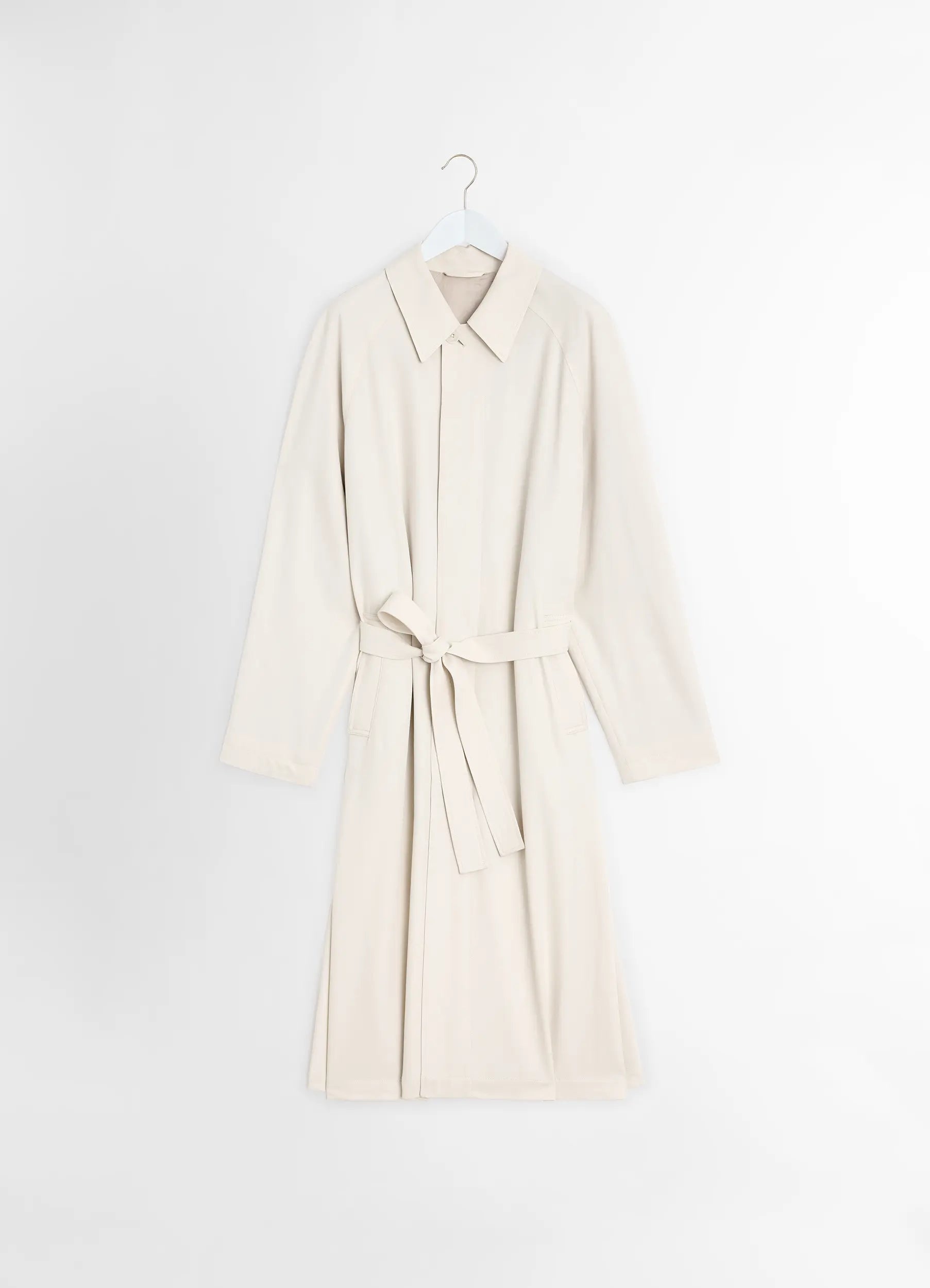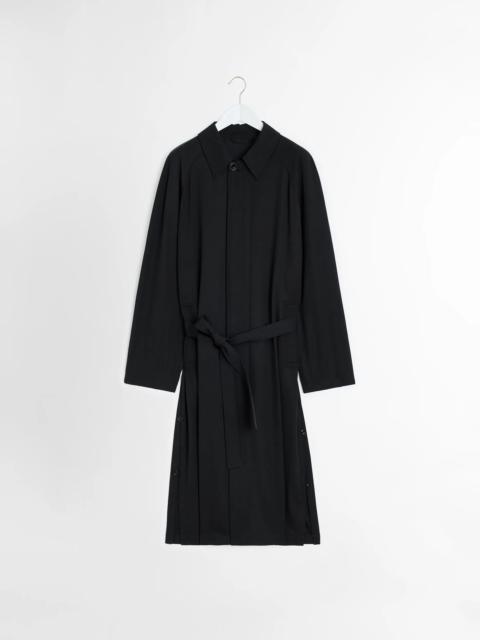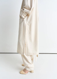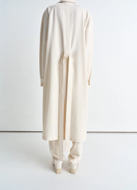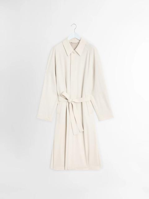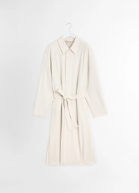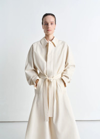 This Light Belted Coat is crafted in wool viscose gabardine, a light material with a flat and compact hand. The removable belt is modular thanks to two adjustable loops that can be positioned according to the desired waist height. DETAILS Straight fit Raglan sleeves Double height knotted belt Front welt pockets Corozo buttons Slitted in the back Unlined Made in Romania Style: CO1108 LF1362 The Model is 177cm / 5'9½'' ft and is wearing a size 36 (S). FABRICS & CARE Main Fabric : 54% Wool, 46% Viscose Main Lining : 51% Cotton, 49% Viscose Second lining : 100% Cotton Do not wash Do not bleach Do not tumble dry Cool ironing Soft dry clean Discover the traceability