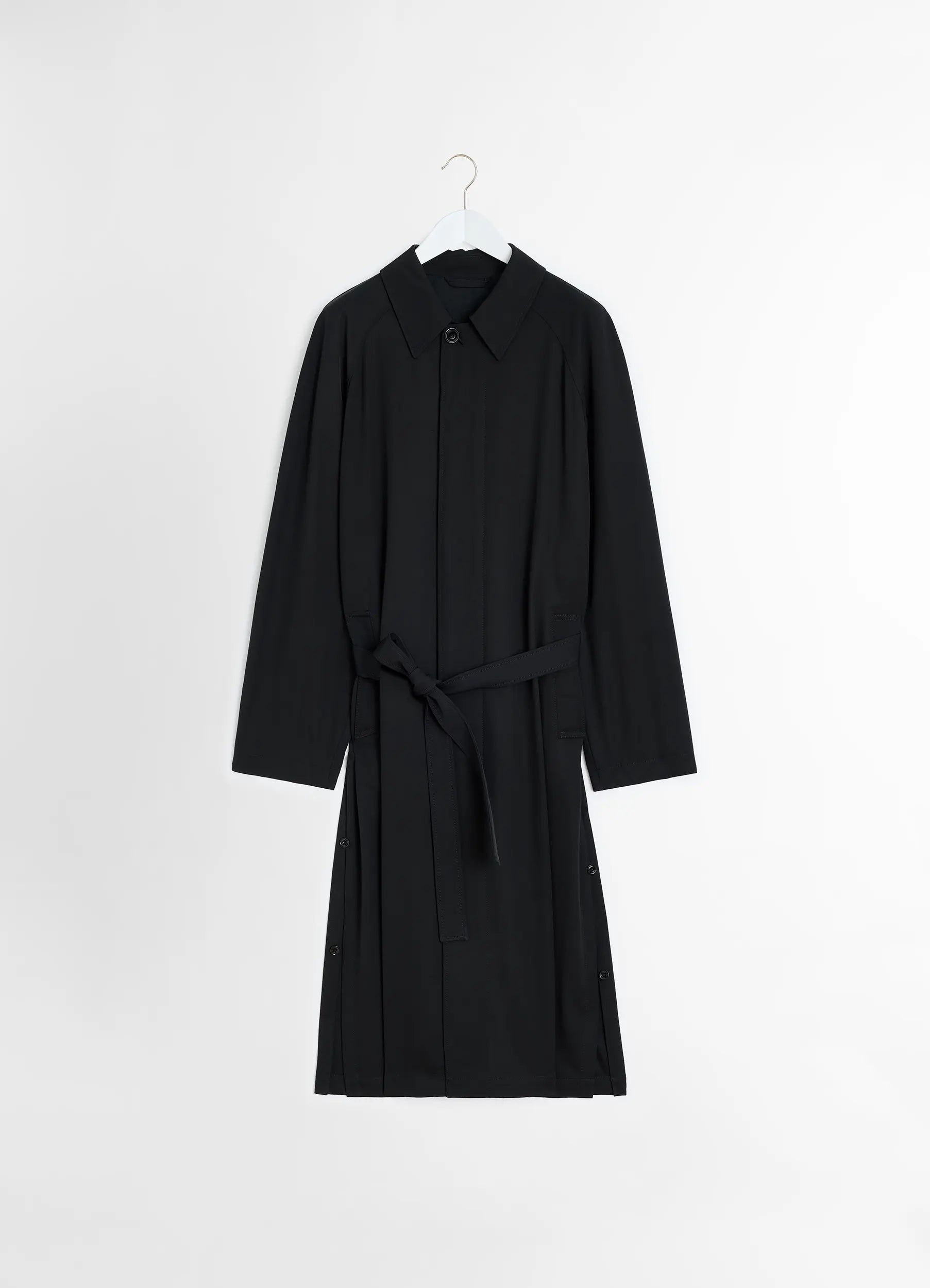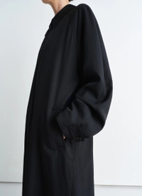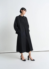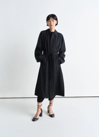 This Light Belted Coat is crafted in wool viscose gabardine, a light material with a flat and compact hand. The removable belt is modular thanks to two adjustable loops that can be positioned according to the desired waist height. DETAILS Straight fit Raglan sleeves Double height knotted belt Front welt pockets Corozo buttons Slitted in the back Unlined Made in Romania Style: CO1108 LF1362 The Model is 176cm / 5' 9½'' ft and is wearing a size 36 (S). FABRICS & CARE Main Fabric : 54% Wool, 46% Viscose Main Lining : 51% Cotton, 49% Viscose Second lining : 100% Cotton Do not wash Do not bleach Do not tumble dry Cool ironing Soft dry clean Discover the traceability