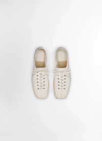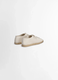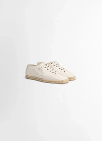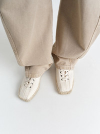 These espadrilles debut this season within LEMAIRE’s Linoleum shoe line. This casual unisex design is crafted in a light cotton canvas with a cord and transclucid rubber cupsole, allowing the handcrafted sole work to appear when looking from underneath. The tightly laced Linoleum espadrilles offer a considered summer option for both office time and leisure. DETAILS - Light cotton canvas - Tight laces - Cord and rubber stitched soles Made in Portugal Style: FO0201 LF1405 FABRICS & CARE Main Material: 100% Cotton Main Lining: 100% Cotton If exposed to water or high humidity, dry your shoes well with an absorbent cloth and let them air dry before storing them. Brush them lightly with a soft brush to avoid damaging the textile fibres. Discover the traceability