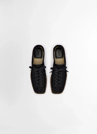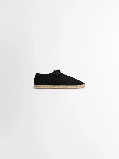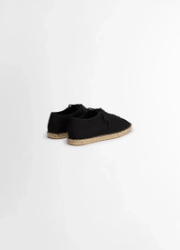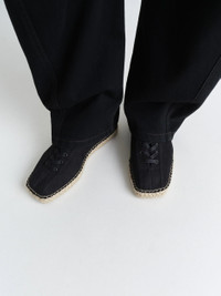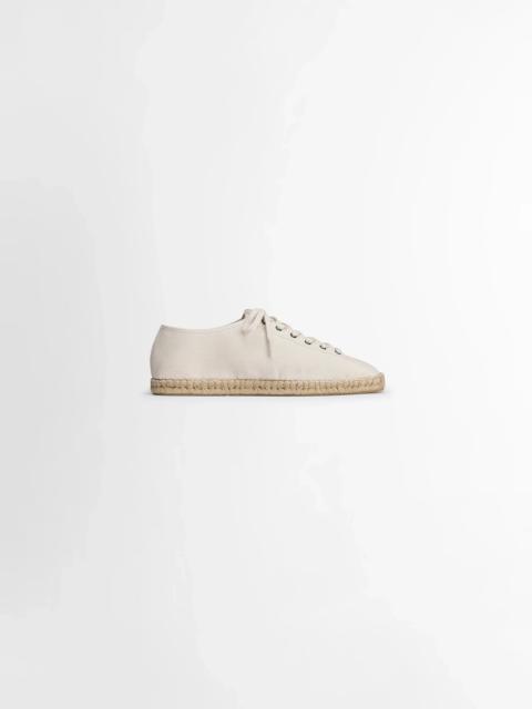 These espadrilles debut this season within LEMAIRE’s Linoleum shoe line. This casual unisex design is crafted in a light cotton canvas with a cord and transclucid rubber cupsole, allowing the handcrafted sole work to appear when looking from underneath. The tightly laced Linoleum espadrilles offer a considered summer option for both office time and leisure. DETAILS - Light cotton canvas - Tight laces - Cord and rubber stitched soles Made in Portugal Style: FO0201 LF1405 FABRICS & CARE Main Material: 100% Cotton Main Lining: 100% Cotton If exposed to water or high humidity, dry your shoes well with an absorbent cloth and let them air dry before storing them. Brush them lightly with a soft brush to avoid damaging the textile fibres. Discover the traceability