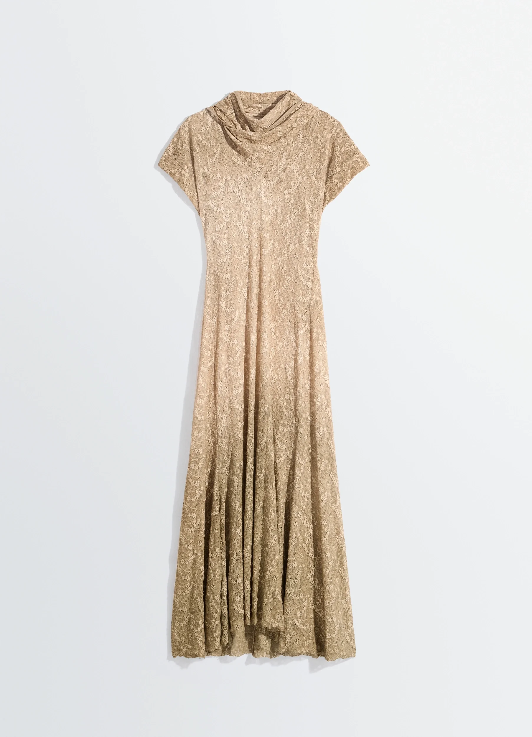 Inspired by LEMAIRE’s balance of comfort and elegance, this foulard dress in lace completes the Maison’s feminine wardrobe. The model is 177 cm tall and wears a size 36 (S). Inspired by LEMAIRE’s balance of comfort and elegance, this foulard dress in lace completes the Maison’s feminine wardrobe. The model is 177 cm tall and wears a size 36 (S). DETAILS Long scarf dress in lace Draped cowl collar scarf-style Short sleeves Invisible zip fastening at back Raw edge back finish Made in Portugal Style: DR1143 LJ1048 Long scarf dress in lace Draped cowl collar scarf-style Short sleeves Invisible zip fastening at back Raw edge back finish Made in Portugal Style: DR1143 LJ1048 CARE Main fabric: 85% polyamide/nylon, 15% elastane Second fabric: 100% cotton Soft wash 30° Do not bleach Do not tumble dry Cool ironing Do not dry clean Dry flat Main fabric: 85% polyamide/nylon, 15% elastane Second fabric: 100% cotton Soft wash 30° Do not bleach Do not tumble dry Cool ironing Do not dry clean Dry flat