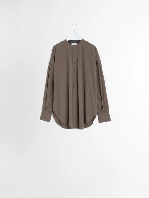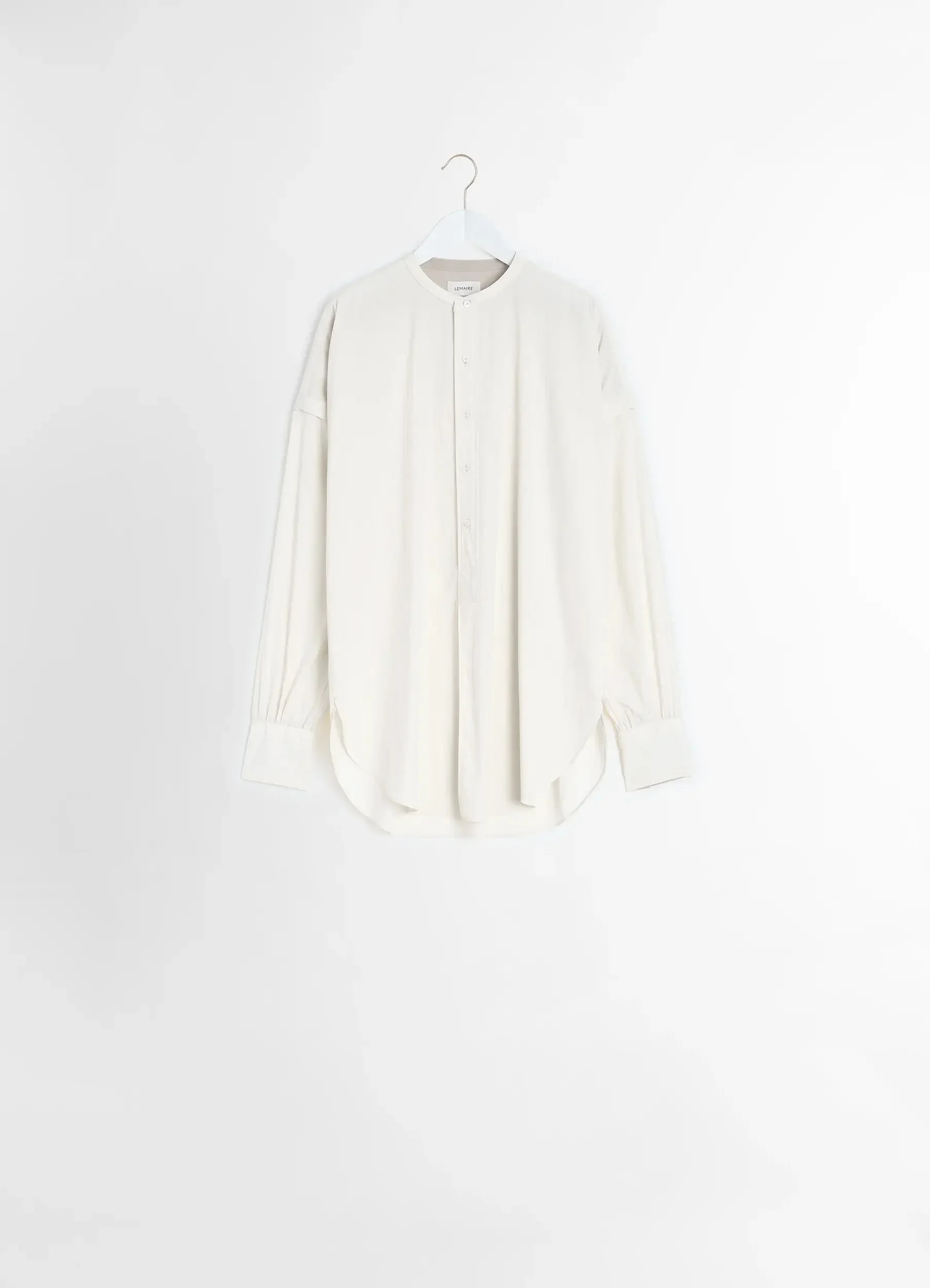 This long shirt is made from technical lyocell, a lightweight yet structured material with a soft hand and a fresh feel on the skin. It has a relaxed fit with straight sleeves, classic cuffs, and two pleats at the back. The button placket stops halfway, after which point the garment remains open, offering an oiption to tie the two floating panels. The rounded, slitted hem fits slightly longer in the back than in the front. The sleeves feature a trompe-l'oeil detail at the top, creating the illusion of a double layer, and the cuffs boast rushing effect for added volume. A contrasting lining detail runs along the neckline, cuffs, and collar stand. DETAILS - Relaxed fit - Long length - Side slits - Half front placket - Contrasting lining details - Mother-of-pearl buttons Made in Portugal Style: SH1150 LF1370 The Model is 179cm / 5'10½" ft and is wearing a size 36 (S). FABRICS & CARE Main Fabric : 69% Lyocell, 31% Polyamide/Nylon Second Fabric: 100% Cotton Soft wash 30° Do not bleach Do not tumble dry Cool ironing Soft dry clean Discover the traceability