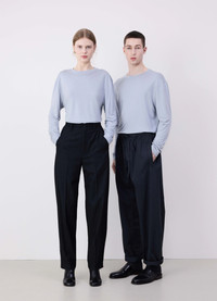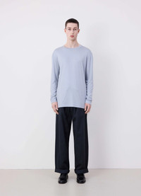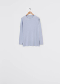 This unisex style is a staple in the LEMAIRE wardrobe. Reimagined this season in a heavy silk jersey with a soft and warm touch, this boxy T-shirt has round armholes for comfort and a single stitch detail along the hem and cuff. The round neck features a twin needle stitching detail. DETAILS - Boxy fit - Round neck - Long sleeves Made in Portugal Style: TO1296 LJ1026 FABRICS & CARE Main Fabric: 100% Silk Soft wash 30° Do not bleach Do not tumble dry Cool ironing Do not dry clean Dry flat