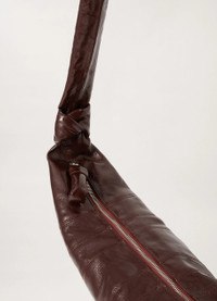 This classic LEMAIRE bag is made of coated cotton with a crisp texture and a shiny finish. Inspired by the shape of a croissant pastry, the bag's design is achieved through an assembly of topstitched cutouts. It features a matching looped zip puller and side knot finishings, and is worn as a shoulder or crossbody bag. DETAILS Cotton canvas lining Metal zip Interior patch pocket Length 22 cm Width 47 cm Depth 7 cmMade in Tunisia Style : BG0001 LF1073 FABRICS & CARE Main Material: 100% Cotton Main Lining: 100% Cotton Do not wash Do not bleach Do not tumble dry Do not iron Professional cleaner only
