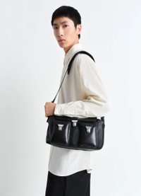 This unisex bag is part of the Gear line, a recent addition to LEMAIRE’s family of accessories. Blending functionality and elegance, its design borrows codes and details from vintage tool bags with a modern twist. The Small Gear bag is reinterpreted this season in a vegetable-tanned nappa leather with a soft and slightly shiny finish - and an LWG Gold certification. It can fit small accessories such as a wallet, a card holder or a smartphone, protected by a zipped closure. An adjustable and removable strap crossing the inside of the bag allows it to be worn in different ways: as a bumbag, on the shoulder or cross-body. DETAILS - Suede lining - Adjustable shoulder handle with shoulder pad - Leather strap crossing the inside of the bag - Height of the strap: 30cm / 12in - Length: 34cm / 13,4in - Width: 25cm / 10in - Depth: 16cm / 6,3in - Main compartment zip closure (can contain accessories, a 11x18cm/4x7in book) - External back zipped pocket (can contain accessories such as a smartphone) - Two front pockets (can contain small accessories, card holder, AirPods Pro 2 case) - Logo embossed Made in Spain Style: BG0096 LL0122 FABRICS & CARE Main Material : 100% Cow Main Lining : 100% Cow Do not wash Do not bleach Do not tumble dry Do not iron Professional leather clean only