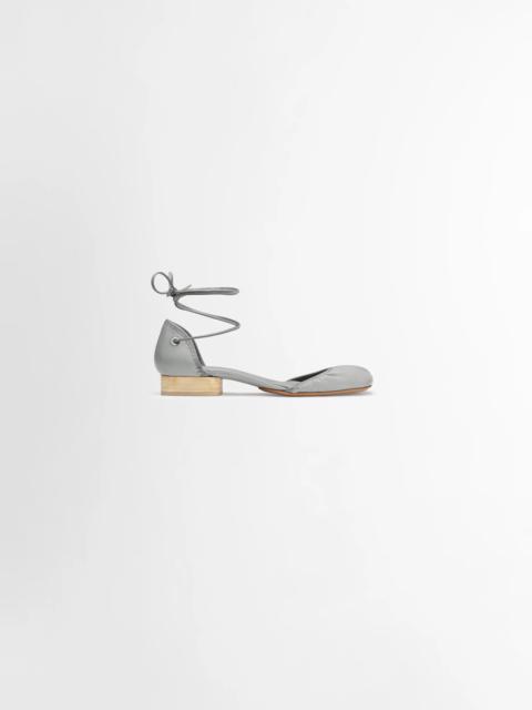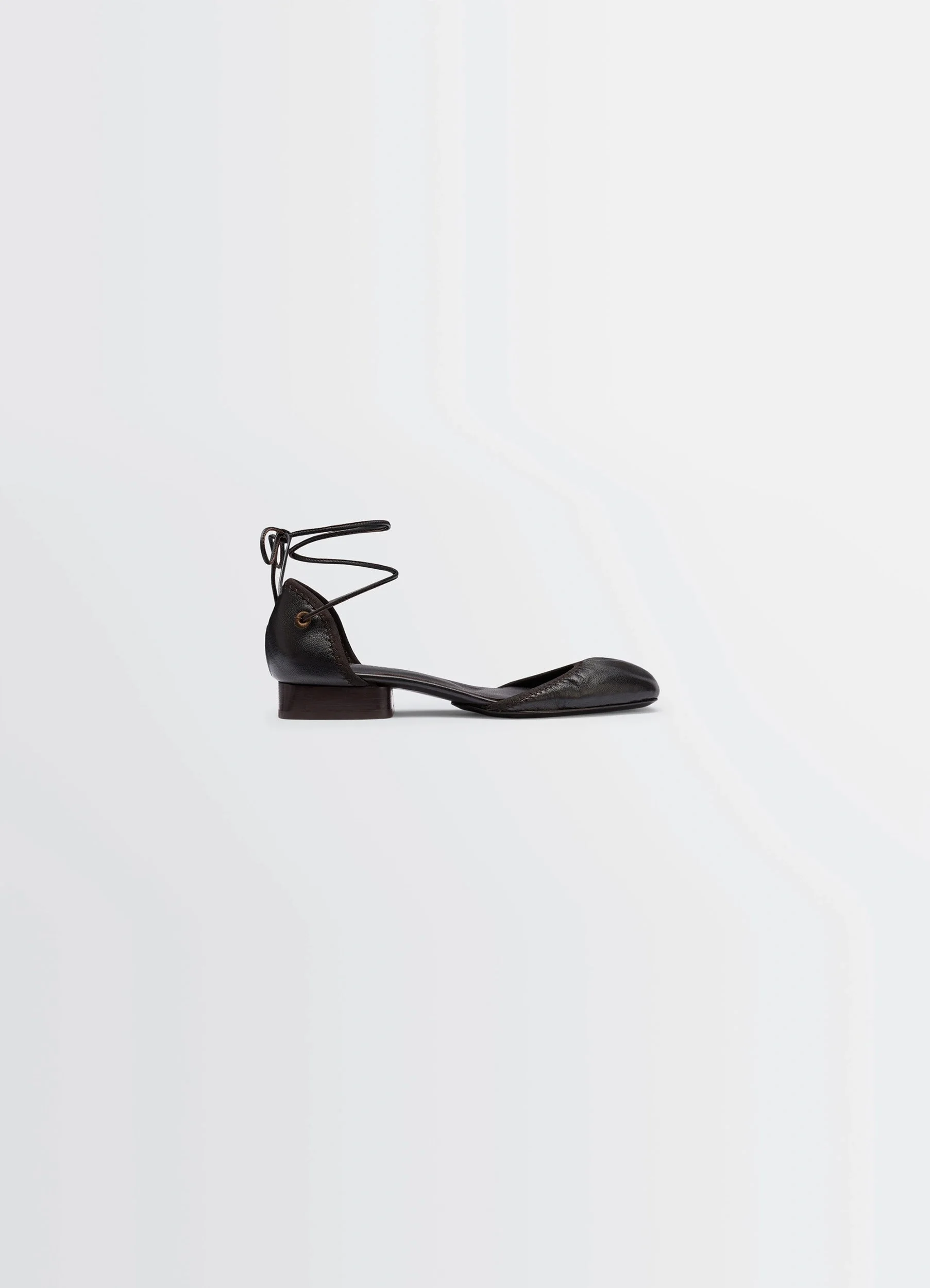 Inspired by the timeless aesthetic of ballet flats, with a modern twist, the Micro Ballerina line offers a delicate spirit, equally suited to everyday wear or an elegant evening alternative. This flat model is made in supple leather with a second-skin look. DETAILS Micro Ballerina flat in supple leather Round, gathered toe Backstay with embroidered eyelets Finished with elastic detailing and visible zigzag stitching Matching tie strap Leather insoles and outsoles Made in Portugal Style: FO0165 LL0115 CARE Main material: 100% sheep Main lining: 100% sheep If exposed to water or high humidity, dry your shoes well with an absorbent cloth and let them air dry before storing them. Smooth leather: Use a soft cloth and apply a measured amount of uncolour milk or cream. Suede leather: Brush lightly with a sponge or special suede cloth.