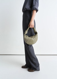 This bag is a new size added to the Fortune Croissant family. It is made from a typical fabric used for LEMAIRE accessories: a soft grained leather that is both supple and resistant, giving the bag a delicately textured hand. The Mini Fortune Croissant boasts a shorter strap than the Fortune Croissant which allows it to be carried by hand. It keeps a feminine silhouette and ideal capacity for common essentials, encouraging a seamless day-to-night transition. Its folded crescent design is achieved through an assembly of topstitched cut-outs, enriched by the signature elements of the iconic Croissant line. DETAILS - This bag can be carried by hand - Lining in cotton canvas - Height of the shoulder strap: 18cm/7in - Length: 28cm/11in - Width: 8cm/3in - Depth: 19cm/7,5in - Side knot finishings - Metal zip puller with buckle in matching fabric - Main compartment can hold accessories: large smartphone or small book (11x18cm) - Internal patch pocket can hold accessories : cardholder, Airpods Pro 2 case, wallet or keys - Embossed LEMAIRE logo Made in Spain Style: BG0125 LL0018 FABRICS & CARE Main Material: 100% Cow Main Lining: 100% Cotton