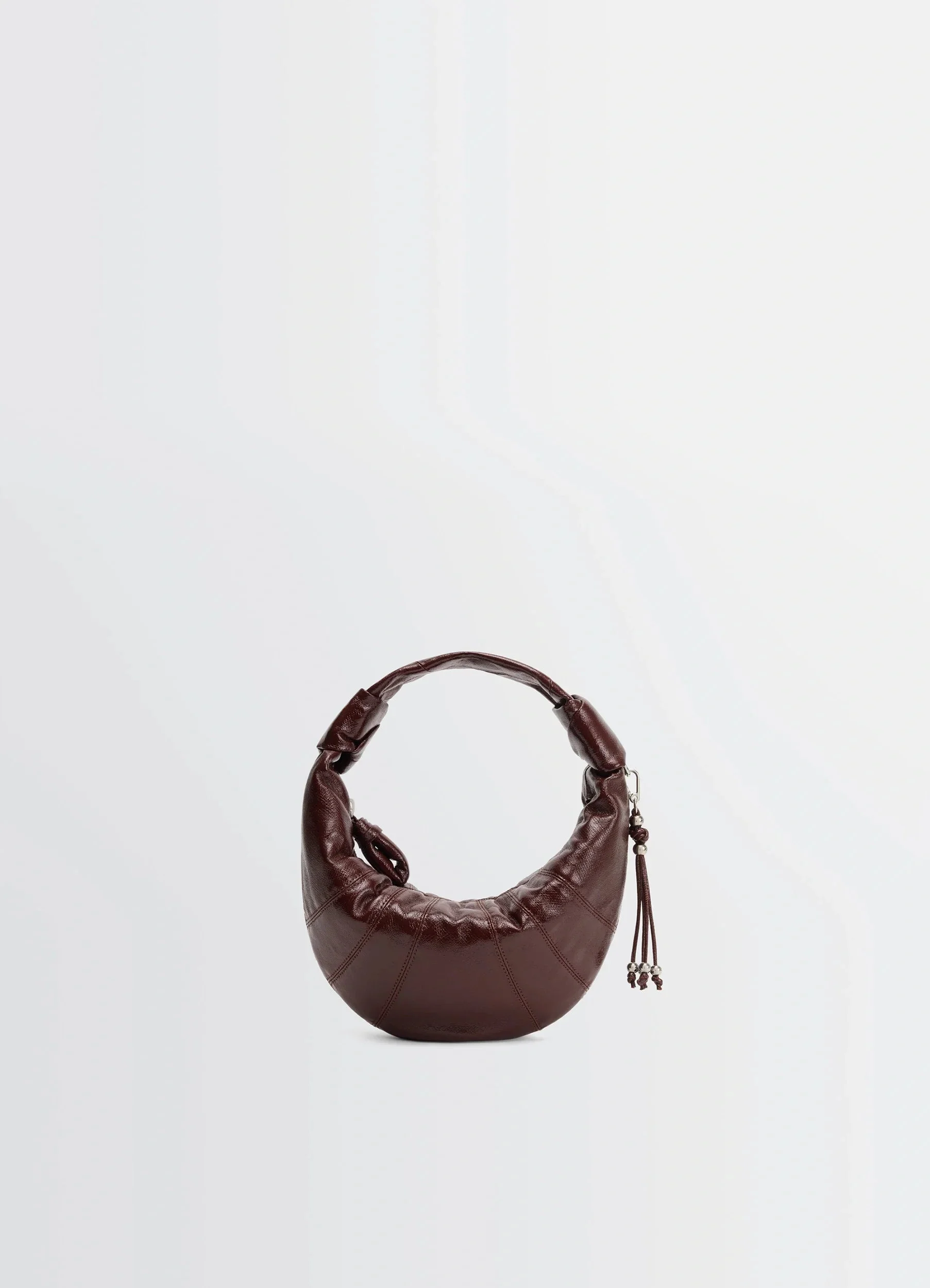 Inspired by the iconic Croissant line, the Fortune Croissant bag introduces a new silhouette for hand and shoulder carry. Its half-moon look is achieved through an assembly of topstitched panels, enriched by knotted elements. To celebrate Valentine's Day, Lemaire revisits the infinity knot - a symbol of prosperity, happiness and longevity - in a charm version that accompanies this mini-model bag made from coated cotton canvas with GOTS-certified yarns, with a textured, shiny appearance. Inspired by the iconic Croissant line, the Fortune Croissant bag introduces a new silhouette for hand and shoulder carry. Its half-moon look is achieved through an assembly of topstitched panels, enriched by knotted elements. To celebrate Valentine's Day, Lemaire revisits the infinity knot - a symbol of prosperity, happiness and longevity - in a charm version that accompanies this mini-model bag made from coated cotton canvas with GOTS-certified yarns, with a textured, shiny appearance. DETAILS Mini Fortune Croissant bag in coated cotton Soft model with stitched panels Hand and shoulder carry Handle with knot detailing Silver-plated side ring with removable charm with carabiner’s clasp Knotted charm in coated cotton with infinity knot and metal beads Zipper closure with quilted pull tab Cotton canvas lining and inside card pocket Lemaire embossed apple leather inside label Silver-plated metalwork Dimensions: Length: 30 cm Height: 19 cm Depth: 5 cm Arrow height: 12 cm Longueur anse: 27 cm Made in Italy Style : BG0184 LF1329 Mini Fortune Croissant bag in coated cotton Soft model with stitched panels Hand and shoulder carry Handle with knot detailing Silver-plated side ring with removable charm with carabiner’s clasp Knotted charm in coated cotton with infinity knot and metal beads Zipper closure with quilted pull tab Cotton canvas lining and inside card pocket Lemaire embossed apple leather inside label Silver-plated metalwork Dimensions: Length: 30 cm Height: 19 cm Depth: 5 cm Arrow height: 12 cm Longueur anse: 27 cm Made in Italy Style : BG0184 LF1329 CARE Main fabric: 100% Cotton Main lining: 100% Cotton Main fabric: 100% Cotton Main lining: 100% Cotton