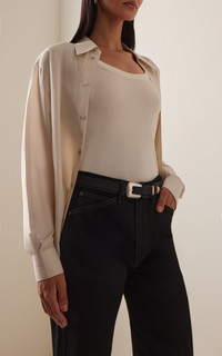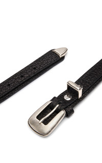 Helmed by Christophe Lemaire and Sarah-Linh Tran, the Lemaire brand creates a modular wardrobe through timeless Parisian design — pieces are meant to be paired effortlessly across seasons and collections. Leather goods and accessories are made by local artisans with novel approaches to age-old techniques. This western belt is a Lemaire wardrobe essential. Made from LWG Silver-certified grained leather, a thick, resistant material characterized by its textured look, it features a double fastening system. PRODUCT DETAILS - Buckle fastening - Composition: 100% cow leather; Detail: 97% zamak, 3% iron - Made in Italy
