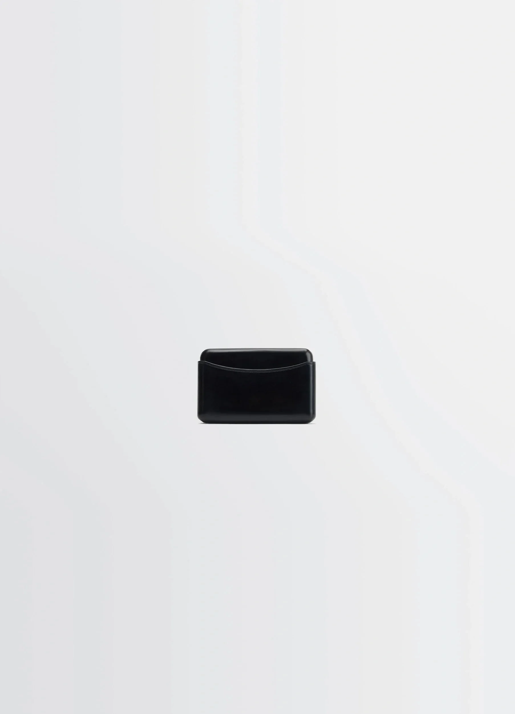 This card holder embodies Lemaire's expertise in small leather goods, featuring the molded leather technique. Crafted in patinated, Silver LWG-certified leather, it is shaped without metal structures, guaranteeing a sculptural, lightweight effect. DETAILS Molded leather and patina cardholder Rigid box-style model in vegetable-tanned leather Cover with curved panels Embossed Lemaire logo Dimensions: Made in Spain Style : SL0072 LL0165 FABRICS & CARE Main material: 100% cow