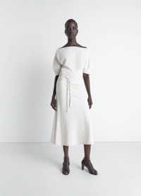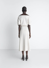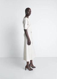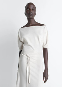Delicacy is emphasized in this dress with refined details. Crafted from a thick cotton-and-linen jersey, it features a cutout with bare shoulders. The model is 177 cm tall and wears a size 36 (S). Delicacy is emphasized in this dress with refined details. Crafted from a thick cotton-and-linen jersey, it features a cutout with bare shoulders. The model is 177 cm tall and wears a size 36 (S). DETAILS Off-shoulder dress in thick cotton-linen jersey Fitted cut Boat neckline Short dropped sleeves Belt with double metal buckle Made in Portugal Style: DR1147 LJ1010 Off-shoulder dress in thick cotton-linen jersey Fitted cut Boat neckline Short dropped sleeves Belt with double metal buckle Made in Portugal Style: DR1147 LJ1010 CARE Main fabric: 70% cotton, 30% linen Soft wash 30° Do not bleach Do not tumble dry Cool ironing Do not dry clean Dry flat Main fabric: 70% cotton, 30% linen Soft wash 30° Do not bleach Do not tumble dry Cool ironing Do not dry clean Dry flat