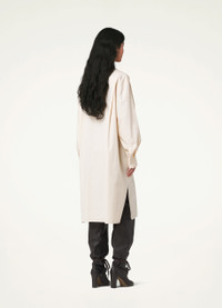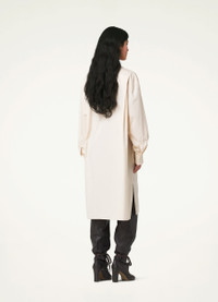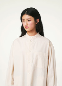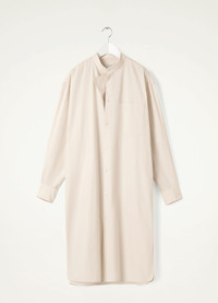 This dress is made of heavy poplin woven from organic cotton yarn, with a smooth surface and a compact feel. Inspired by mens shirting, it fits like an oversized shirt dress featuring a triangular panel below the stand collar that can be draped across the chest when unbuttoned. A patch pocket and side-seam pockets complete its practical details. DETAILS Loose fit Stand collar Corozo buttons Below-the-knee length Adjustable buttoned cuffs Side vents Back yoke Made in Romania Style : DR1027 LF839 This model is 173 cm and is wearing a size 34/XS FABRICS & CARE Main Fabric : 100% Coton Soft wash 30° Do not bleach Do not tumble dry Cool ironing Soft dry clean