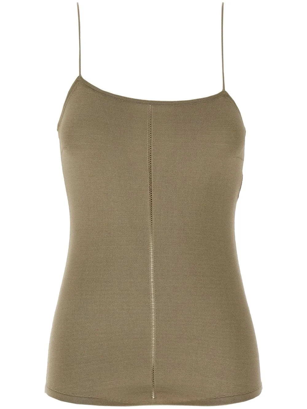 Openwork top Highlights - Beige - Spaghetti straps - Scoop neck - Sleeveless - Straight hem Made in Italy Composition Viscose 75%, Dryarn® 25%