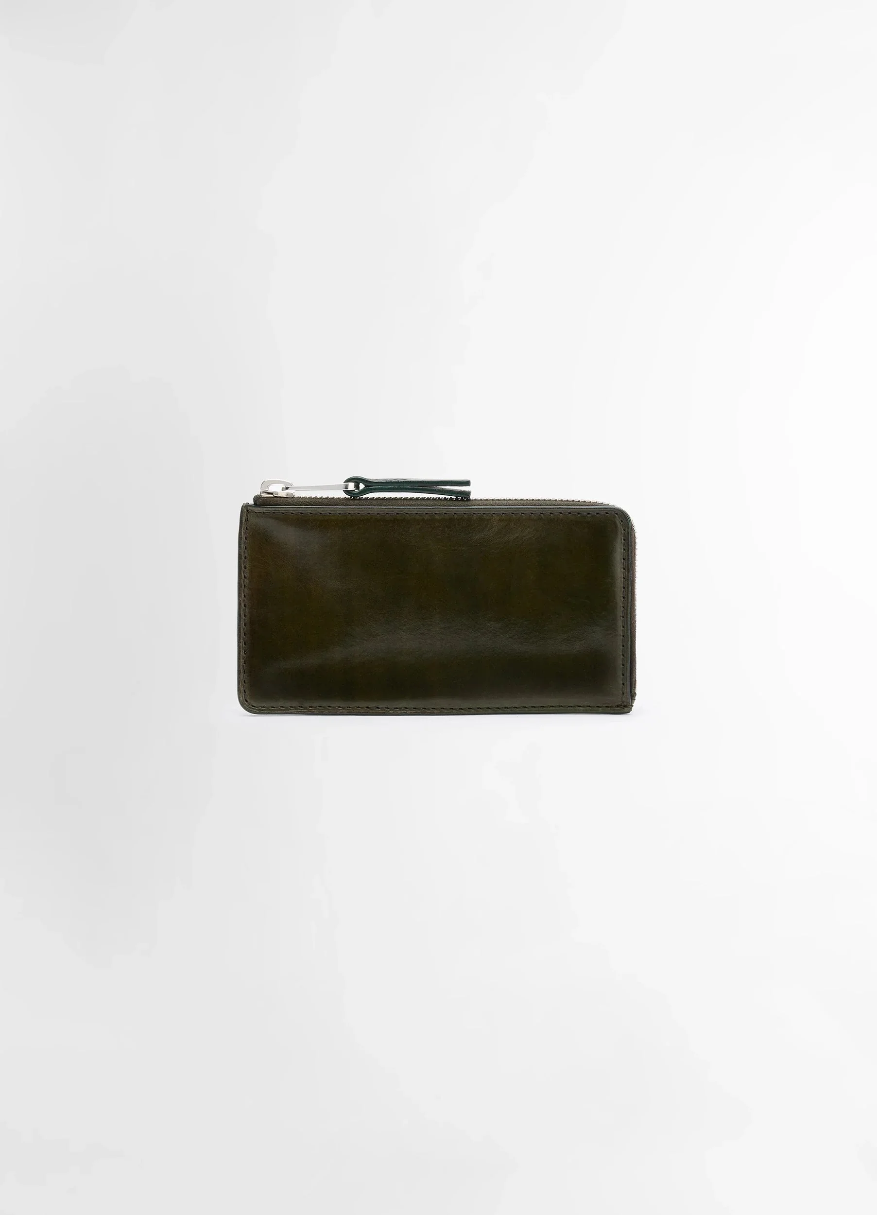 Highlighting LEMAIRE's commitment to leather craftsmanship, this season sees the debut of the Patina Zipped line, crafted in a soft black leather with a subtle shine. This Patina Zip Coin Card Holder zips open to reveal a zipped internal compartment and six card slots. There is an additional external compartment as well. It is lined with leather and comes with a signature zip puller. DETAILS Handmade External compartment Zipped compartment 6 card slots Coin pocket with snap button Branded puller with leather tab Leather lining Zipped closure Made in Spain Style: SL0055 LL0132 FABRICS & CARE Main Fabric: 100% Cow Main Lining: 100% Cow Do not wash Do not bleach Do not tumble dry Do not iron Professional leather clean only