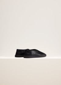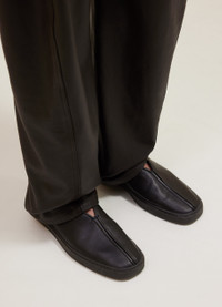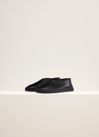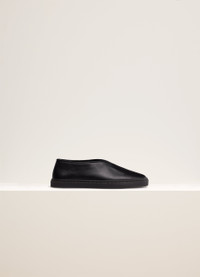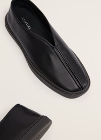 These sneakers are a new addition to LEMAIRE’s footwear collection. Their casual design is inspired by vintage gymnasium sport shoes with a classic LEMAIRE twist. The shape of the Piped Sneakers is obtained with a simple construction of two pieces of smooth soft cow leather with a fine grain that are sewn together on the front and sealed with leather piping. A square toe and a stitched cupsole add to their flexibility. DETAILS - Square toe - Stitched cupsole - Stitching and piped details Made in Portugal Style: FO0098 LL0010 FABRICS & CARE Main Material: 100% cow If exposed to water or high humidity, dry your sneakers well with an absorbent cloth and let them air dry before storing them. You can use a soft cloth and apply a measured amount of uncolored milk or cream to give them a shine.