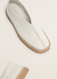 These unisex sneakers are a new addition to LEMAIRE’s footwear collection. Their casual design is inspired by vintage gymnasium sport shoes with a classic LEMAIRE twist. The shape of the Piped Sneakers is obtained with a simple construction of two pieces of smooth soft cow leather with a fine grain that are sewn together on the front and sealed with leather piping. A square toe and a stitched cupsole add to their flexibility. DETAILS - Square toe - Stitched cupsole - Stitching and piped details Made in Portugal Style: FO0099 LL0010 FABRICS & CARE Main Material: 100% cow If exposed to water or high humidity, dry your sneakers well with an absorbent cloth and let them air dry before storing them. You can use a soft cloth and apply a measured amount of uncolored milk or cream to give them a shine.