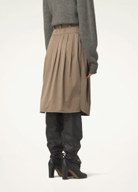 This skirt is made of light cotton twill with a soft hand that is slightly shiny and a smooth drape. It is high-waisted, with pleating that extends from below the hip adding volume to the silhouette. It features a rounded, split hem and military inspired details including a removable buckled belt, a buttoned fly and large welt pockets. DETAILS Straight fit Corozo buttons Removable belt with metal buckle Below-the-knee length Belt loops Twin stitching Made in Romania Style : SK1010 LF824 This model is 177 cm and is wearing a size 36/S FABRICS & CARE Main Fabric : 100% Coton Do not wash Do not bleach Do not tumble dry Cool ironing Soft dry clean