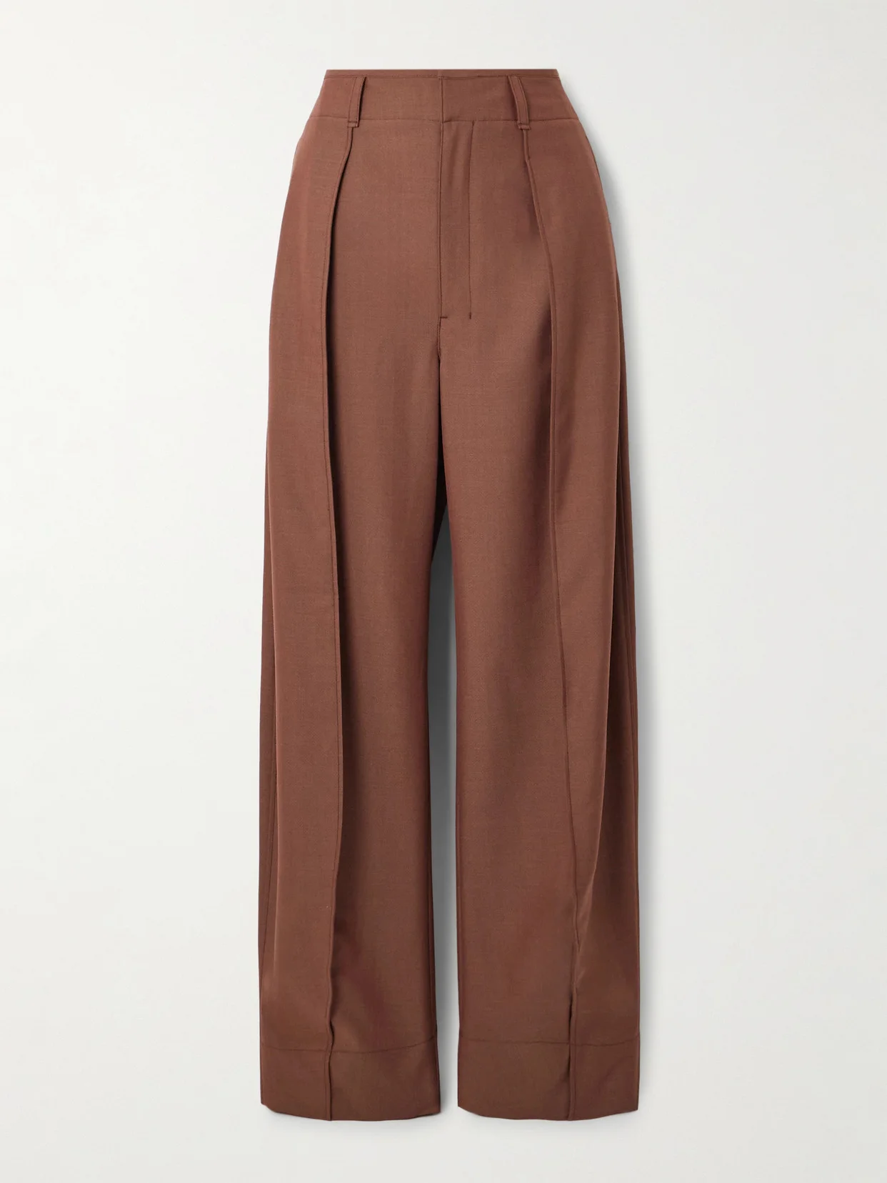The beautifully executed tailoring throughout LEMAIRE's Fall '24 collection feels at once relaxed and sophisticated. These grain de poudre pants are woven with plenty of wool and pleated through the front to enhance the wide legs, which taper slightly at the cuffs. Wear yours with the coordinating blazer. Large to size. See Size & Fit notes.