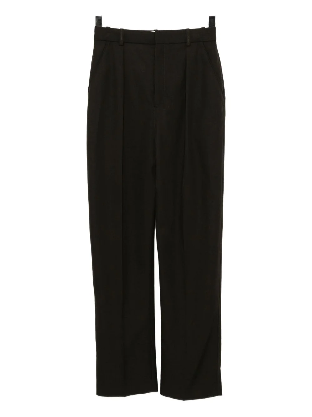 pleated straight-leg trousers Highlights - Cedar brown - Concealed front button, hook and zip fastening - Two side slash pockets - Two rear welt pockets Imported Composition Outer: Wool 54%, Viscose 46% Lining: Cotton 100% SIZE & FIT Model measurements Height 5 ft 10 in(1.77 m) Bust/Chest 30.31 in(77 cm) Hips 34.25 in(87 cm) Waist 25.19 in(64 cm) Washing instructions Dry Clean Only
