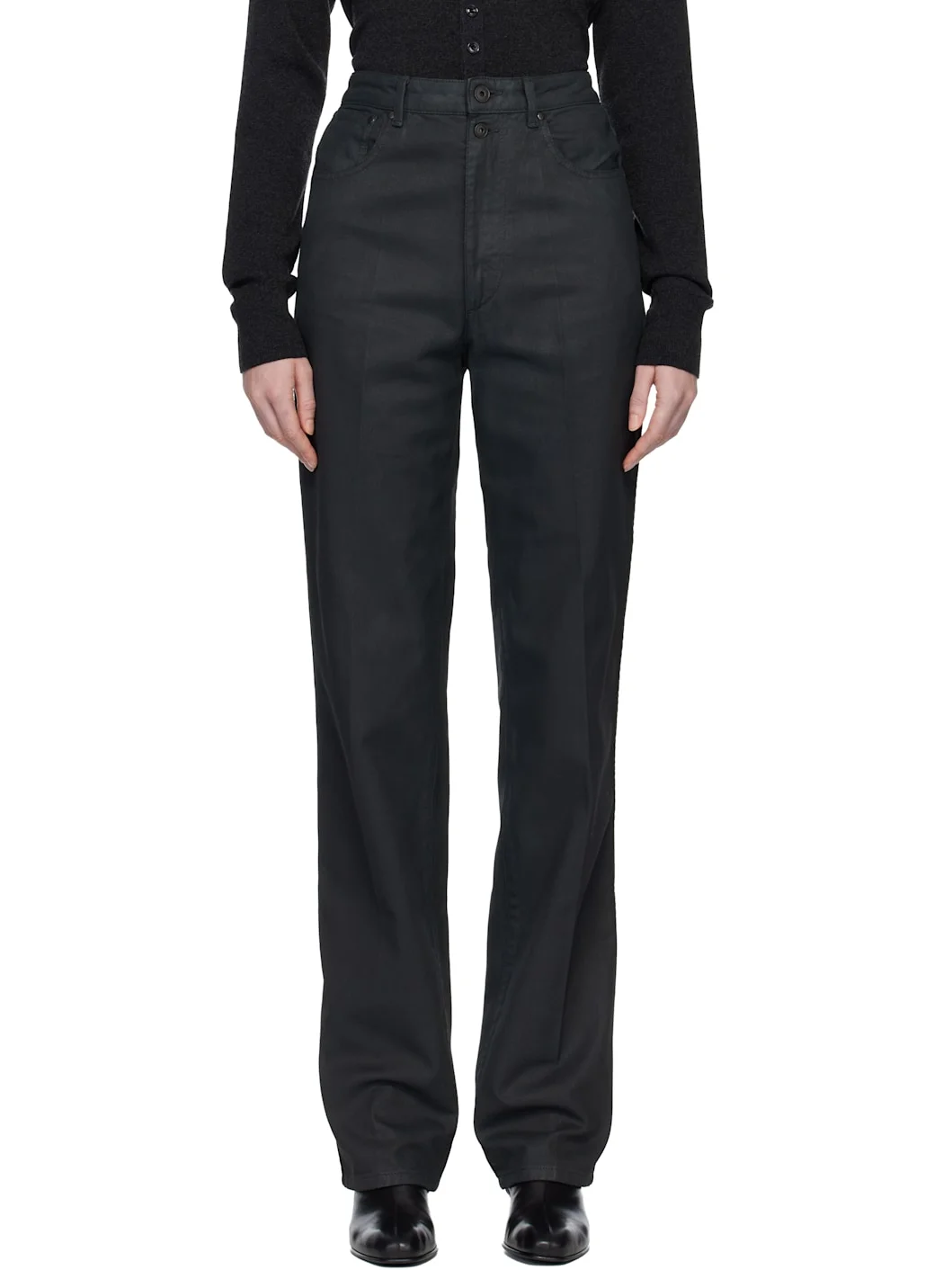 Waxed non-stretch denim jeans. · Yarn-dyed · Straight-leg · High-rise · Belt loops · Five-pocket styling · Zip fly · Logo patch at back waistband Supplier color: Coal Body: 100% coton. Pocket lining: 65% polyester, 35% cotton. Made in Italy 252646F060001