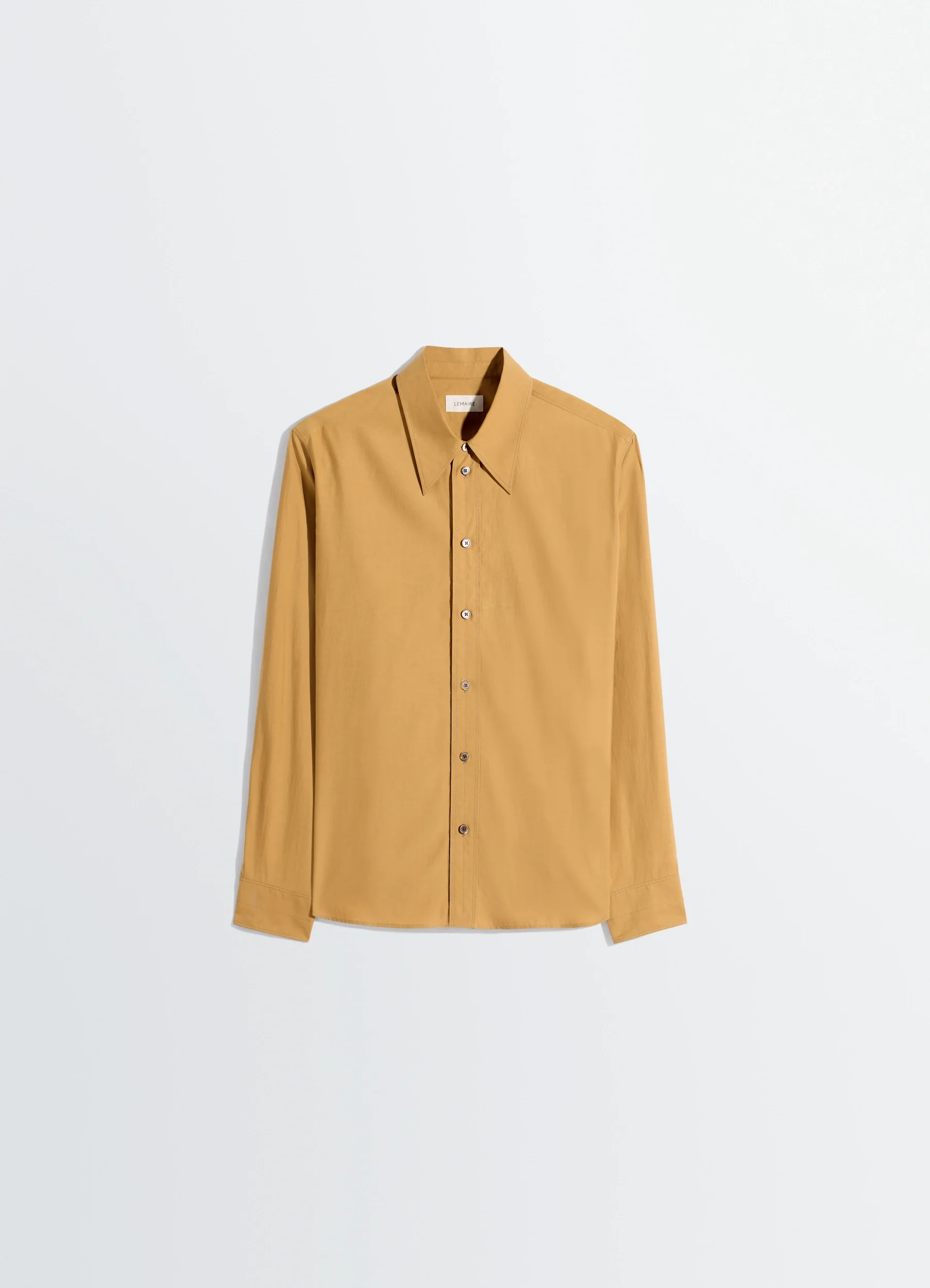 This fitted shirt is a classic wardrobe piece, reinterpreted here with a pointed collar. It's made from a washed cotton-silk blend with a light patina and a soft hand. The model is 177 cm and is wearing a size 36 (S). This fitted shirt is a classic wardrobe piece, reinterpreted here with a pointed collar. It's made from a washed cotton-silk blend with a light patina and a soft hand. The model is 177 cm and is wearing a size 36 (S). DETAILS Shirt in washed cotton silk Fitted cut Pointed shirt collar Front button closure Long sleeves Straight buttoned cuffs Mother-of-pearl buttons Flat pleat at the back Contrast topstitching Made in Tunisia Style : SH1182 LF1500 Shirt in washed cotton silk Fitted cut Pointed shirt collar Front button closure Long sleeves Straight buttoned cuffs Mother-of-pearl buttons Flat pleat at the back Contrast topstitching Made in Tunisia Style : SH1182 LF1500 CARE Do not wash Do not bleach Do not tumble dry Cool ironing Soft dry clean Do not wash Do not bleach Do not tumble dry Cool ironing Soft dry clean