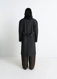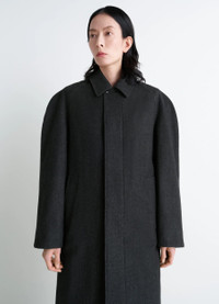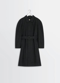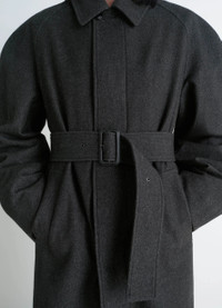 This raglan-sleeved coat is crafted from a blend of RWS wool and cotton in a twill weave. Its oversized cut and androgynous allure are part of a desire to reinterpret the world of a traditional wardrobe, and represent Lemaire's approach to singular elegance. The model is 177 cm tall and is wearing a size 36 (S). This raglan-sleeved coat is crafted from a blend of RWS wool and cotton in a twill weave. Its oversized cut and androgynous allure are part of a desire to reinterpret the world of a traditional wardrobe, and represent Lemaire's approach to singular elegance. The model is 177 cm tall and is wearing a size 36 (S). DETAILS Raglan-sleeved coat in wool and cotton twill >Oversized cut Fully lined in contrast color Shirt collar Long raglan sleeves Hidden button closure Side pockets Belt loops at the back Removable belt with leather-wrapped buckle and metal eyelets Inside pocket Made in Hungary Style : CO1122 LF1319 Raglan-sleeved coat in wool and cotton twill >Oversized cut Fully lined in contrast color Shirt collar Long raglan sleeves Hidden button closure Side pockets Belt loops at the back Removable belt with leather-wrapped buckle and metal eyelets Inside pocket Made in Hungary Style : CO1122 LF1319 CARE Main Material: 82% Virgin Wool 18% Cotton Main Lining: 100% Cotton Second Lining: 100% Cotton Technichal materials: 100% Cow Leather Main Material: 82% Virgin Wool 18% Cotton Main Lining: 100% Cotton Second Lining: 100% Cotton Technichal materials: 100% Cow Leather