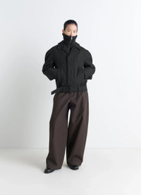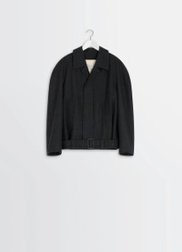 This oversized coat is made from a blend of RWS wool and cotton in a twill weave. Its short belted cut and androgynous allure are part of a desire to reinterpret the world of a traditional wardrobe, and represent Lemaire's approach to singular elegance. The model is 177 cm tall and is wearing a size 36 (S). DETAILS Short Coat in wool and cotton twill Oversized cut Fully lined in contrast color Shirt collar Long raglan sleeves Hidden button closure Side pockets Belt loops and removable belt with leather-wrapped buckle and metal eyelets Inside pocket Made in Hungary Style : OW1156 LF1319 CARE Main Material: 82% Virgin Wool 18% Cotton Main Lining: 100% Cotton Second Lining: 100% Cotton Technichal materials: 100% Cow Leather