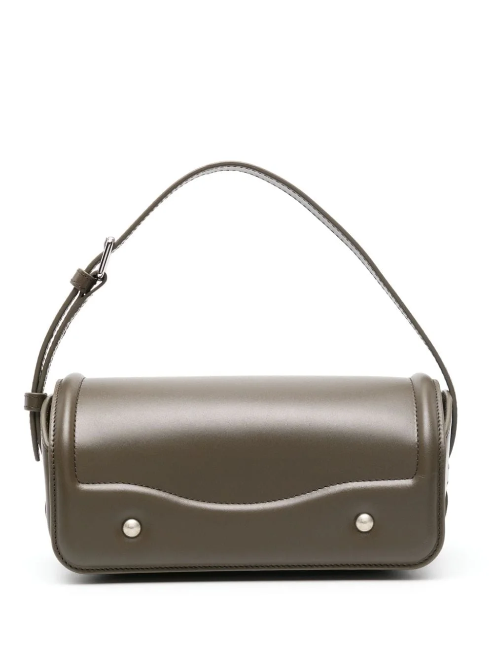 Ransel leather tote bag LEMAIRE's khaki Ransel tote bag is a traditional satchel style inspired by Japanese children’s Randoseru backpacks. It’s crafted from vegetable-tanned leather with an adjustable top handle that wraps around the structural silhouette and a padded front flap that’s framed with stitching. Highlights - Khaki - Calf leather - Adjustable detachable shoulder strap - Logo-debossed patch to the rear - Silver-tone stud detailing - Main compartment - Internal logo patch - Canvas lining - Foldover top with magnetic fastening Imported Composition Outer: Calf Leather 100% Lining: Cotton 100% SIZE & FIT Model measurements Height 5 ft 10 in(1.78 m) Bust/Chest 31.49 in(80 cm) Hips 37 in(94 cm) Waist 23.62 in(60 cm) Measurement DEPTH 3.93 in(10 cm) HEIGHT 4.72 in(12 cm) WIDTH 9.84 in(25 cm)