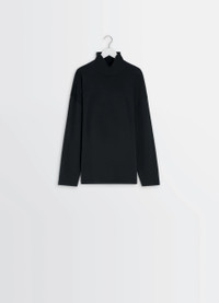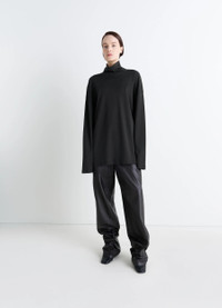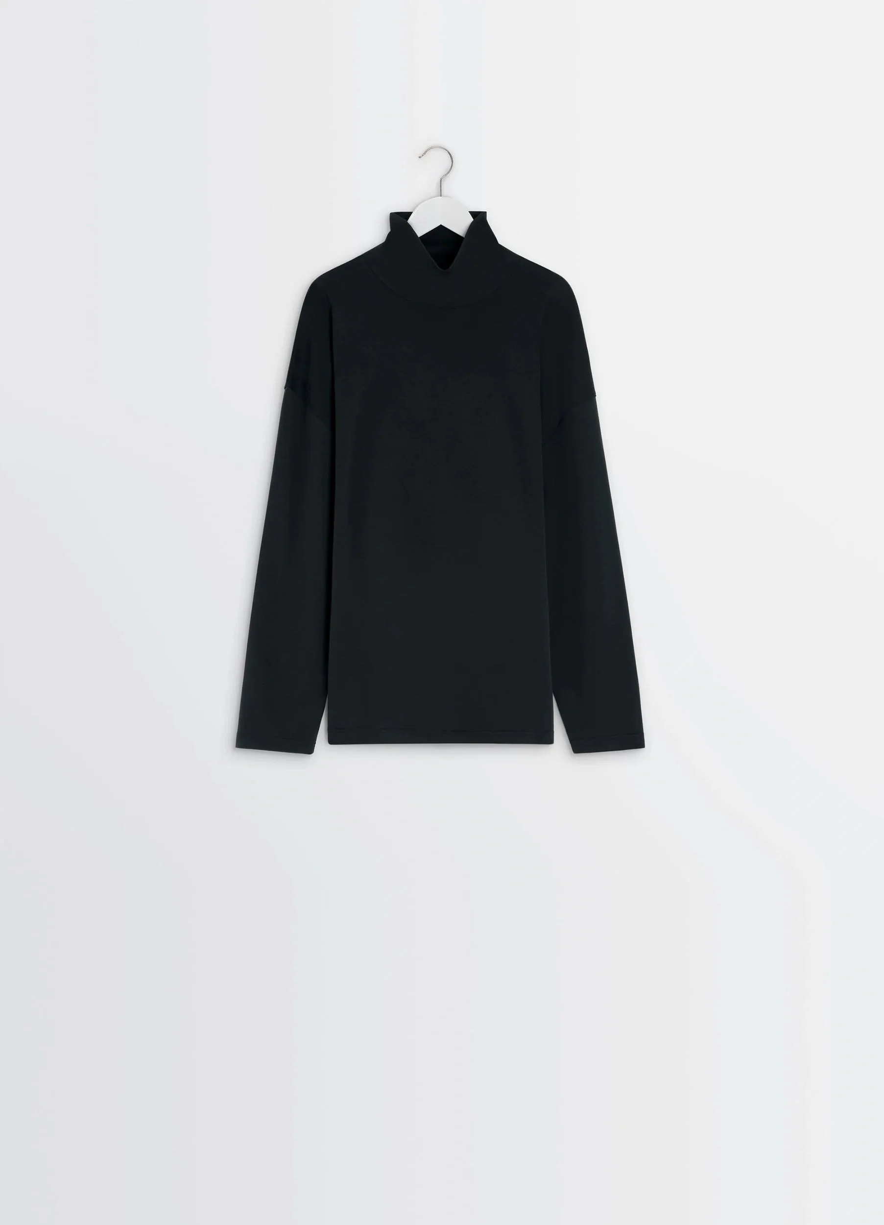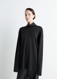 This casual mock neck t-shirt is a Lemaire wardrobe essential. It Is made from a cotton and silk-blend interlock jersey. DETAILS Relaxed t-shirt in cotton silk-blend interlock jersey Straight cut Mock neck Long sleeves Made in Portugal Style : TO1467 LJ1043 The models are 177 cm and 187 cm and are wearing sizes 36 (S) and 48 (M). FABRICS & CARE Main Material: 80% Cotton 20% Silk