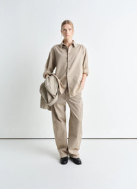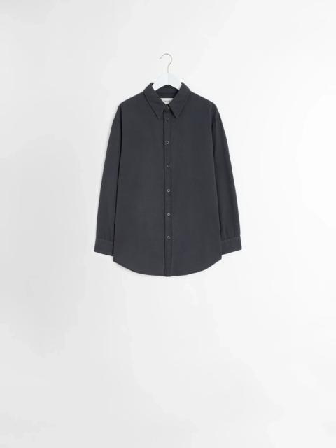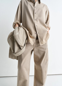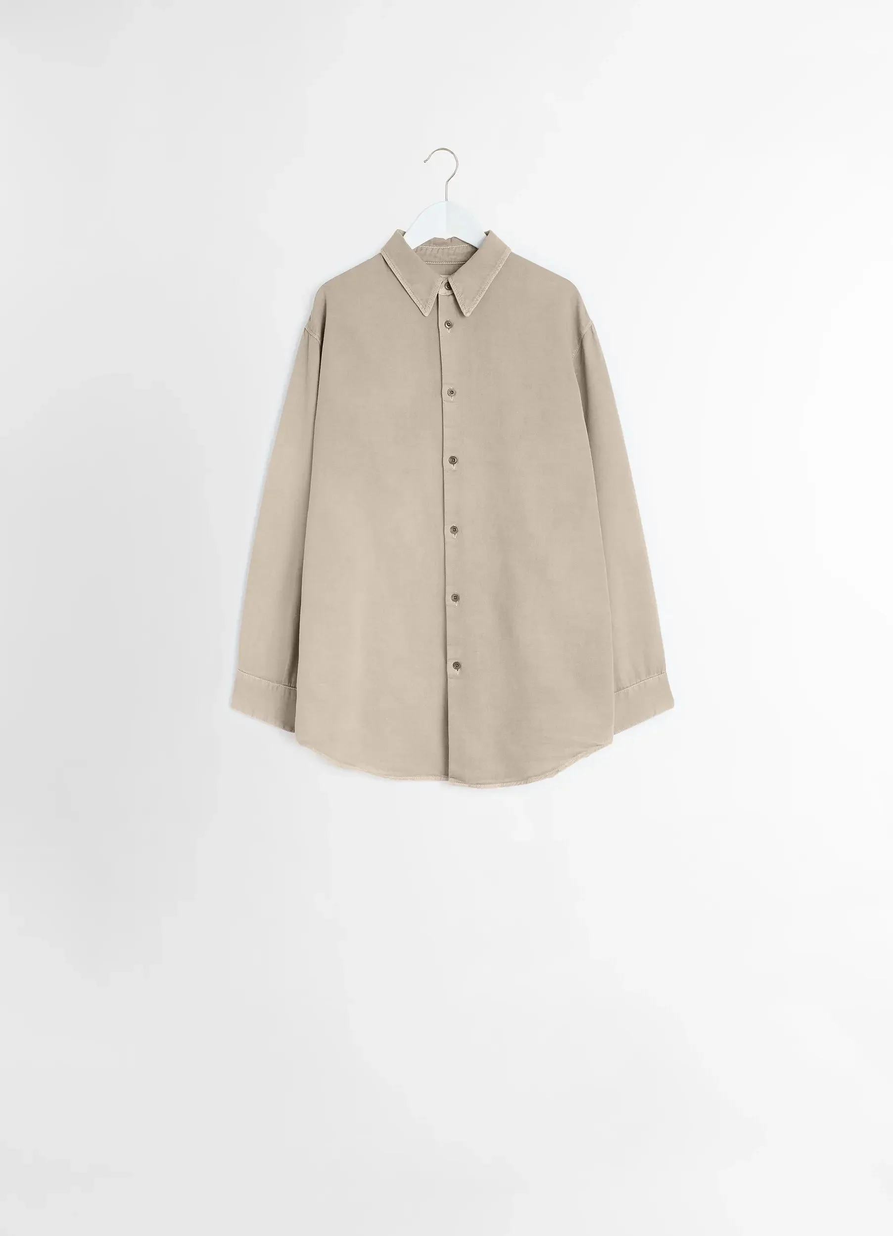 This loose-fit, unisex shirt is crafted in light snowy denim with a soft hand, a fabric which has been bleached and washed using pumice stones for a singular aspect, adding both fluidity and texture to the garment. This drapey style has ample sleeves which button via a contrasted topstitched placket, a signature LEMAIRE detail also present alongside the front fastening system. DETAILS - Loose fit - Double patch pocket - Mother-of-pearl buttons - Contrast stitching detail - Button placket Made in Morocco Style: SH1160 LD1044 The Model is 179cm / 5'10½" ft and is wearing a size 36 (S). FABRICS & CARE Main Fabric: 100% Cotton Soft wash 30° Do not bleach Do not tumble dry Cool ironing Soft dry clean Wash upside down