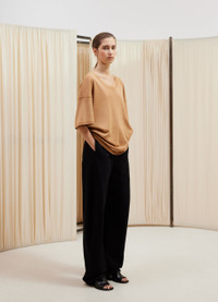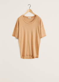 This classic t-shirt is a staple of LEMAIRE’s wardrobe. It is made of a mid-weight jersey woven into a flexible rib. It has a loose cut that is slightly fitted at the hips, an open crewneck and dropped shoulders. Details include a self-rib collar and flat-lock finishings on the shoulders. DETAILS - Loose fit - Ribbed collar Made in Portugal Style: TO1146 LJ1016 FABRICS & CARE Main Material 100% Coton Soft wash 30° Do not bleach Do not tumble dry Cool ironing Do not dry clean Dry flat