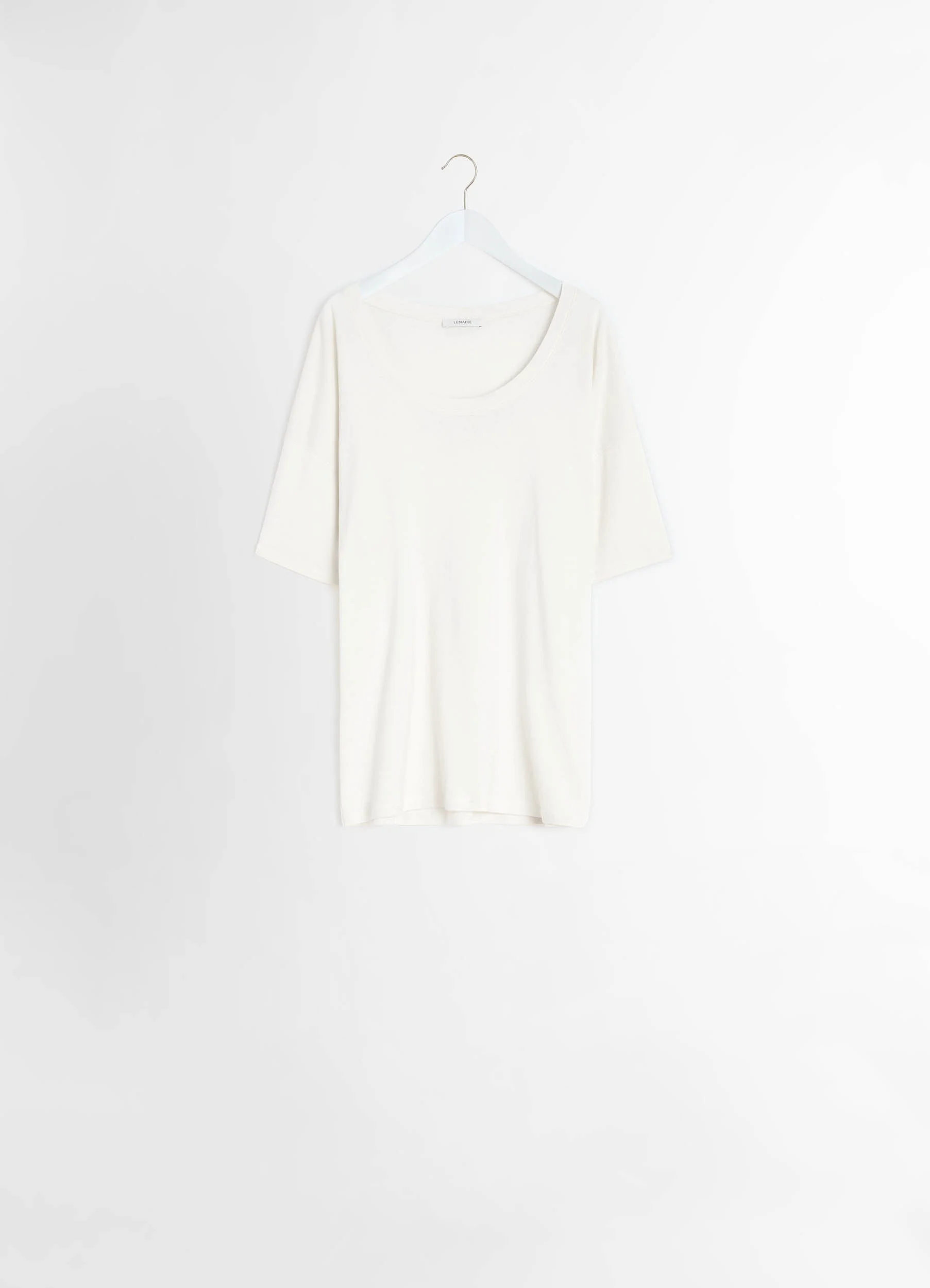 This classic t-shirt is a staple of LEMAIRE’s wardrobe. It is made of mid-weight cotton jersey woven into a flexible rib. It has a loose cut that is slightly fitted at the hips, an open crewneck and dropped shoulders. Details include a self-rib collar and flat-lock finishings on the shoulders. This classic t-shirt is a staple of LEMAIRE’s wardrobe. It is made of mid-weight cotton jersey woven into a flexible rib. It has a loose cut that is slightly fitted at the hips, an open crewneck and dropped shoulders. Details include a self-rib collar and flat-lock finishings on the shoulders. DETAILS - Loose fit - Ribbed collar Made in Portugal Style: TS0002 LJ1016 The Model is 179cm / 5'10½" ft and is wearing a size 36 (S). - Loose fit - Ribbed collar Made in Portugal Style: TS0002 LJ1016 The Model is 179cm / 5'10½" ft and is wearing a size 36 (S). CARE Main Fabric: 100% Cotton Soft wash 30° Do not bleach Do not tumble dry Cool ironing Do not dry clean Dry flat Main Fabric: 100% Cotton Soft wash 30° Do not bleach Do not tumble dry Cool ironing Do not dry clean Dry flat
