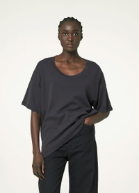 This classic t-shirt is made of a mid-weight jersey woven into a flexible rib. It has a loose cut that is slightly fitted at the hips, an open crewneck and dropped shoulders. Details include a self-rib collar and flat-lock finishings on the shoulders. DETAILS Loose fit Ribbed collar Made in Portugal Style : TO1146 LJ060 This model is 180 cm and is wearing a size 36/S FABRICS & CARE Main Fabric : 100% Coton Soft wash 30° Do not bleach Do not tumble dry Cool ironing Do not dry clean Dry flat