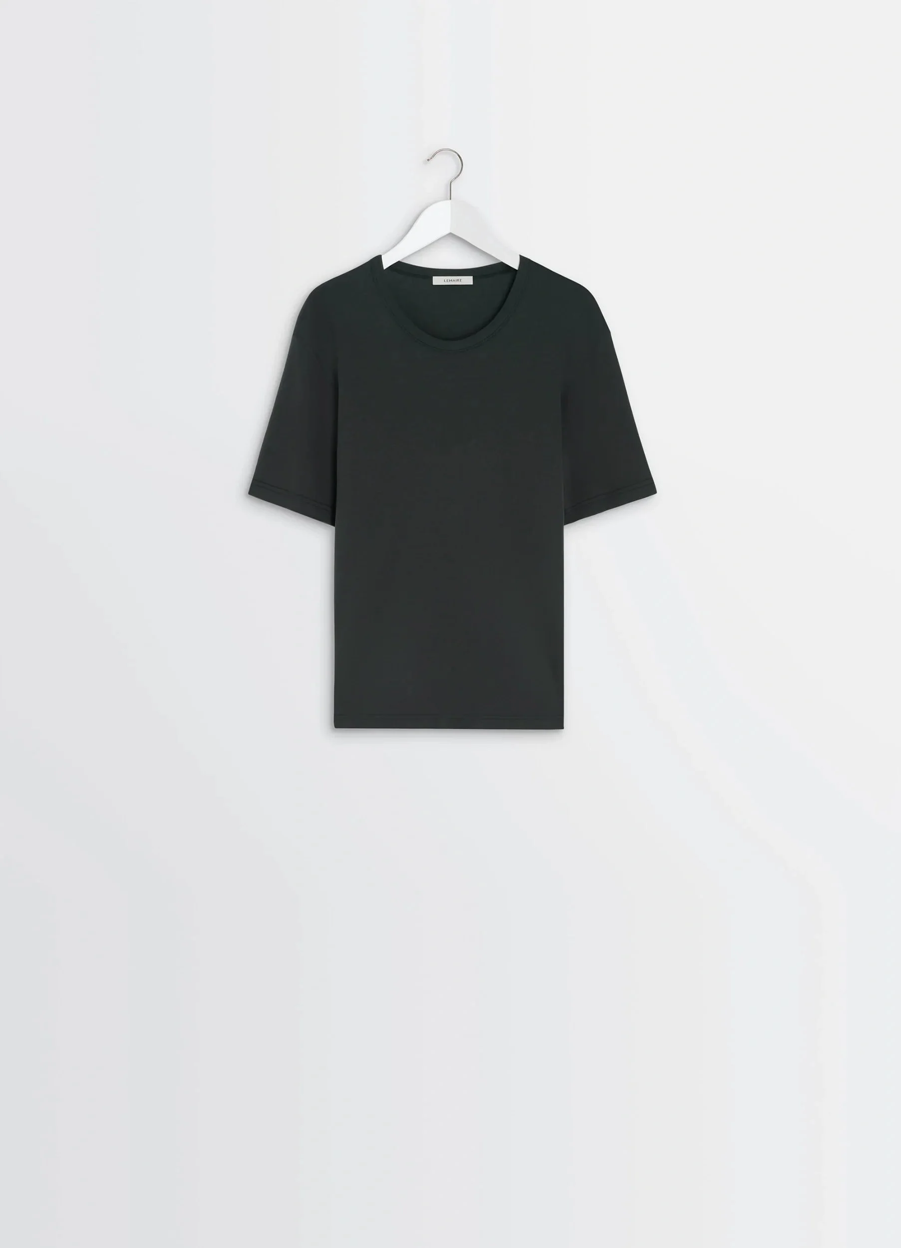 This short-sleeved t-shirt is a classic piece in the Lemaire wardrobe. It is crafted in flowing cotton jersey, knitted with supple, textured ribbing. DETAILS Short sleeve t-shirt in ribbed jersey Straight cut Ribbed crewneck Made in Portugal Style : TO1440 LJ1016 The model is 177 cm tall and is wearing a size 36 (S). FABRICS & CARE Main Material: 100% Cotton