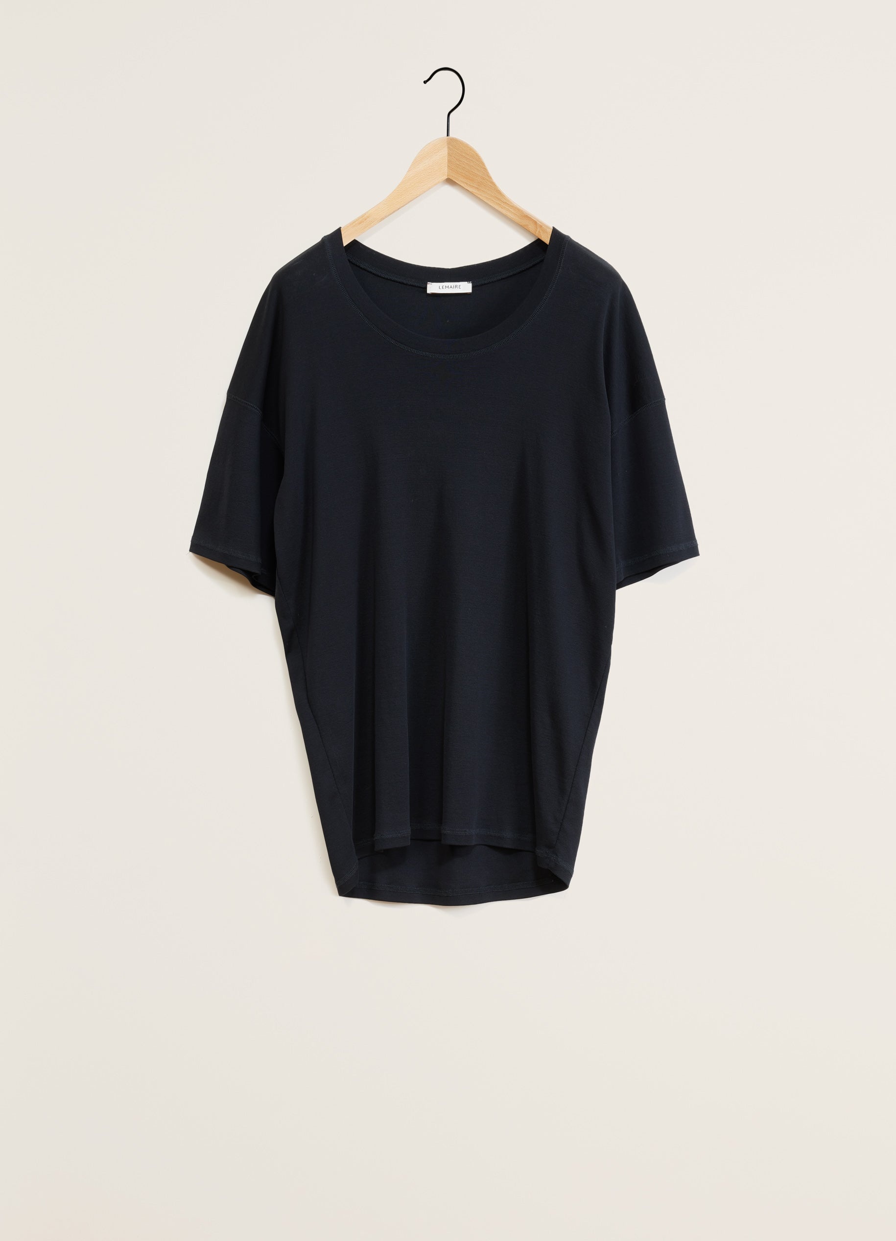 This classic t-shirt is a staple of LEMAIRE’s wardrobe. It is made of a mid-weight jersey woven into a flexible rib. It has a loose cut that is slightly fitted at the hips, an open crewneck and dropped shoulders. Details include a self-rib collar and flat-lock finishings on the shoulders. DETAILS - Loose fit - Ribbed collar Made in Portugal Style: TO1146 LJ1016 FABRICS & CARE Main Material 100% Coton Soft wash 30° Do not bleach Do not tumble dry Cool ironing Do not dry clean Dry flat