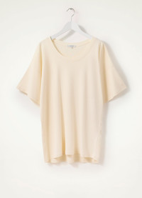 This classic t-shirt is made of a mid-weight jersey woven into a flexible rib. It has a loose cut that is slightly fitted at the hips, an open crewneck and dropped shoulders. Details include a self-rib collar and flat-lock finishings on the shoulders. DETAILS Loose fit Ribbed collar Made in Portugal Style : TO1146 LJ060 This model is 180 cm and is wearing a size 36/S FABRICS & CARE Main Fabric : 100% Coton Soft wash 30° Do not bleach Do not tumble dry Cool ironing Do not dry clean Dry flat