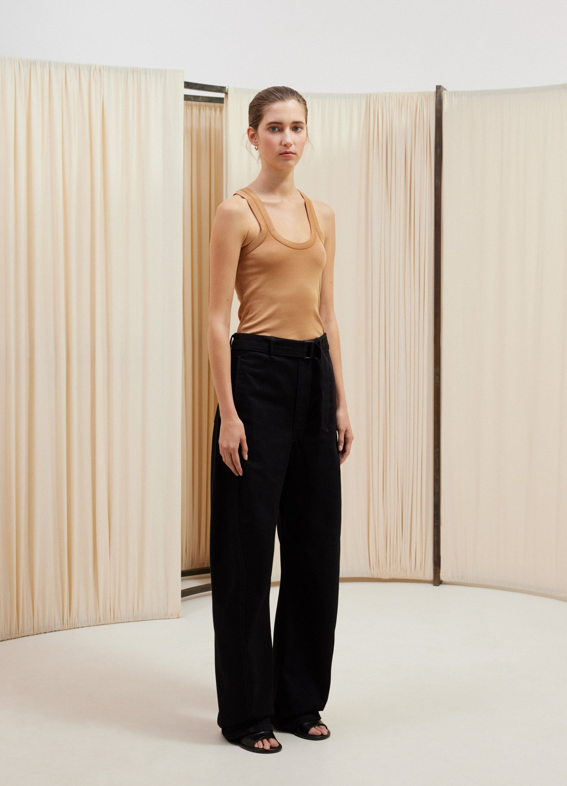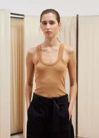 This tank top is a staple of LEMAIRE’s wardrobe. It is made of a mid-weight jersey woven into a flexible rib with a textured quality. Its fitted shape features a self-rib collar, and straps that narrow together on the back to reveal the shoulder blades. DETAILS - Fitted shape - Rib collar and straps - Flat-lock finishings Made in Portugal Style: TO1199 LJ1019 FABRICS & CARE Main Material: 100% Cotton Soft wash 30° Do not bleach Do not tumble dry Cool ironing Do not dry clean Dry flat