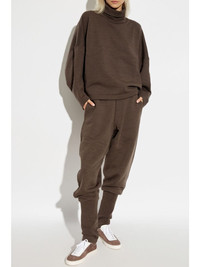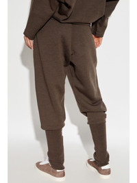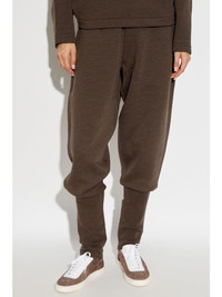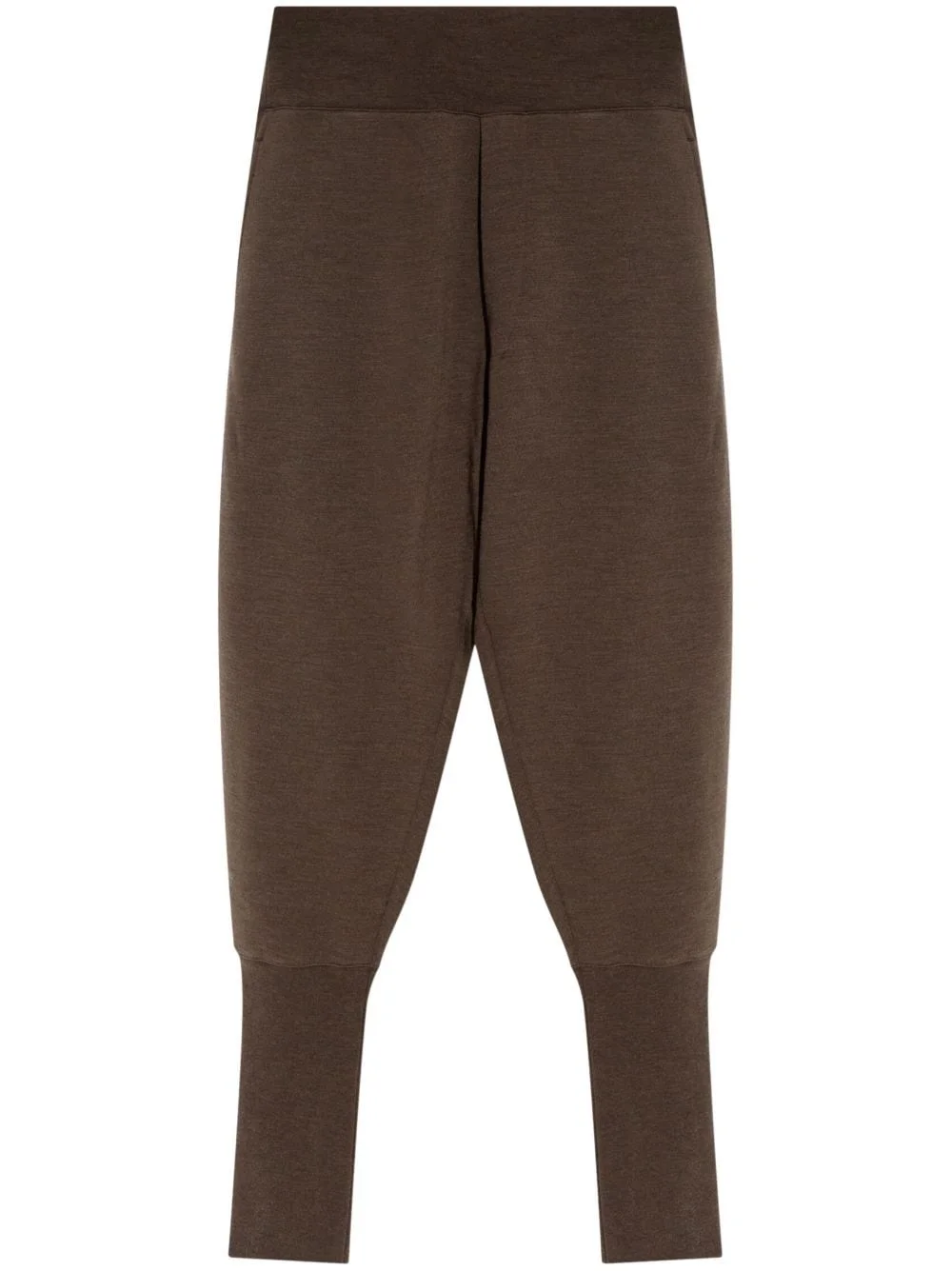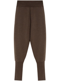 ribbed-trim trousers Highlights - Chocolate brown - Wool-cotton blend - Ribbed trim - Elasticated waistband - High-waisted - Two side slit pockets - Tapered leg Imported Composition Wool 65%, Cotton 35% SIZE & FIT Measurement FRONT RISE 13.77 in(35 cm) INSIDE LEG 33.07 in(84 cm) HIPS 40.15 in(102 cm) WAIST 21.25 in(54 cm)