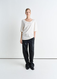 This classic t-shirt is a staple of LEMAIRE’s wardrobe. It is made of mid-weight cotton jersey woven into a flexible rib. It has a loose cut that is slightly fitted at the hips, an open crewneck and dropped shoulders. Details include a self-rib collar and flat-lock finishings on the shoulders. This classic t-shirt is a staple of LEMAIRE’s wardrobe. It is made of mid-weight cotton jersey woven into a flexible rib. It has a loose cut that is slightly fitted at the hips, an open crewneck and dropped shoulders. Details include a self-rib collar and flat-lock finishings on the shoulders. DETAILS - Loose fit - Ribbed collar Made in Portugal Style: TS0002 LJ1016 The Model is 179cm / 5'10½" ft and is wearing a size 36 (S). - Loose fit - Ribbed collar Made in Portugal Style: TS0002 LJ1016 The Model is 179cm / 5'10½" ft and is wearing a size 36 (S). CARE Main Fabric: 100% Cotton Soft wash 30° Do not bleach Do not tumble dry Cool ironing Do not dry clean Dry flat Main Fabric: 100% Cotton Soft wash 30° Do not bleach Do not tumble dry Cool ironing Do not dry clean Dry flat