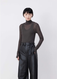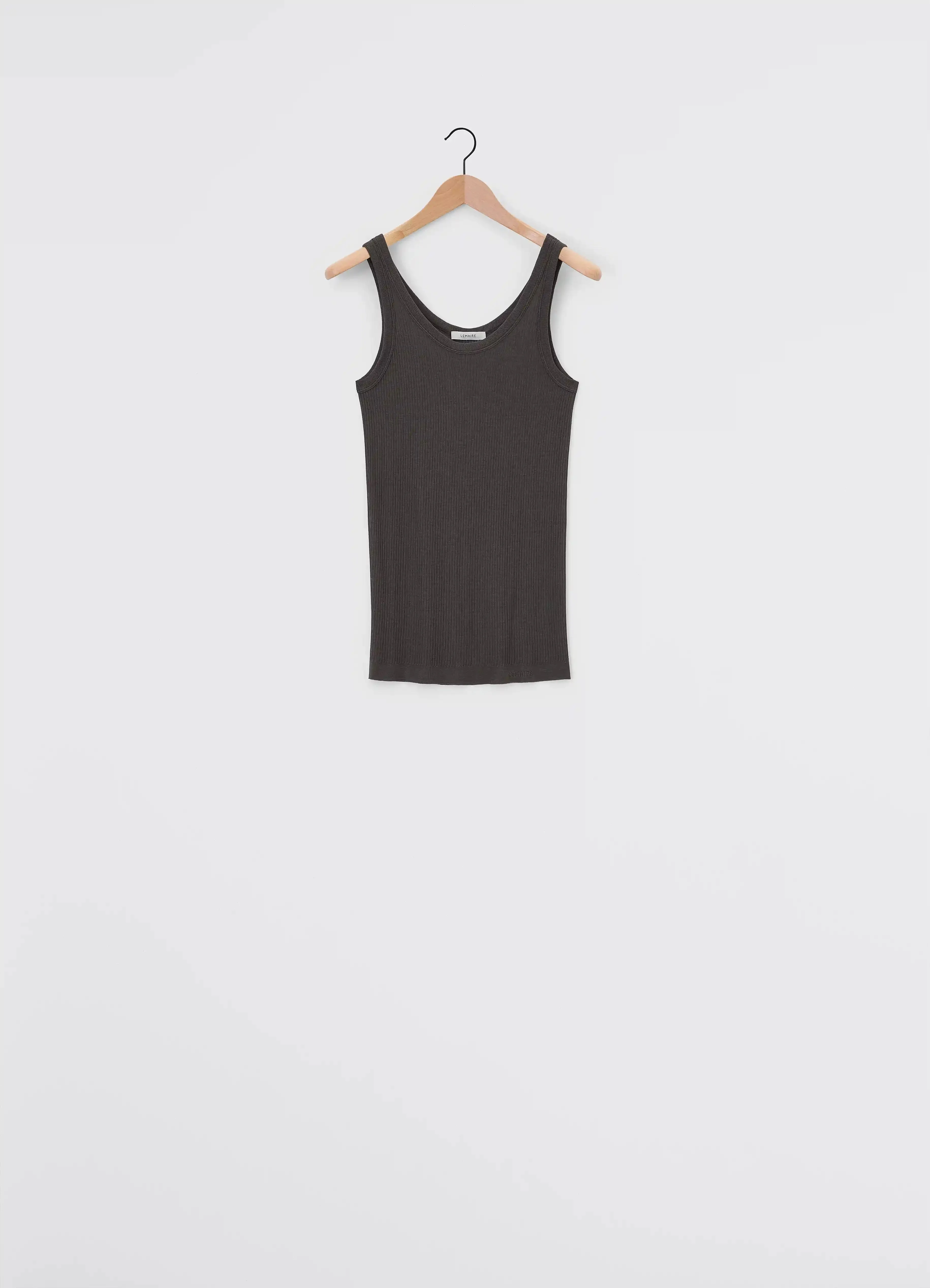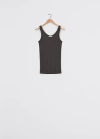 This tank top is a staple of LEMAIRE’s wardrobe and a new addition to its family of seamless garments. It is made of a smooth blend of viscose and silk, a fine and breathable fabric that has been woven using a specific savoir-faire from French manufacturer EMO. Its fitted shape features an open crewneck, rib finishing at the collar and around the straps. A discrete incorporated logo is knitted in the stitch on either side of the body. DETAILS - Fitted shape - Rib collar and straps - LEMAIRE signature in an openwork stitch at the bottom of the garment Made in France Style: TO1156 LK1017 FABRICS & CARE Main Fabric: 88% Viscose / 12% Silk Hand wash Do not bleach Do not tumble dry Cool ironing Soft dry clean Dry flat