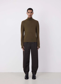 LEMAIRE's Seamless Turtle Neck Top is a new timeless essential. It is crafted in fine merino wool with a delicate and soft hand. Manufactured by EMO, a French textile clothing maker specialised in tubular knitwear, this classic style is woven into a flexible rib on the turtleneck and the hem to sit comfortably on the body. DETAILS - Relaxed fit - Turtleneck - Fine rib - Flexible rib at cuffs and hem Made in France Style: TO1280 LK1032 FABRICS & CARE Main Fabric: 100% Wool Hand wash Do not bleach Do not tumble dry Cool ironing Soft dry clean Dry flat