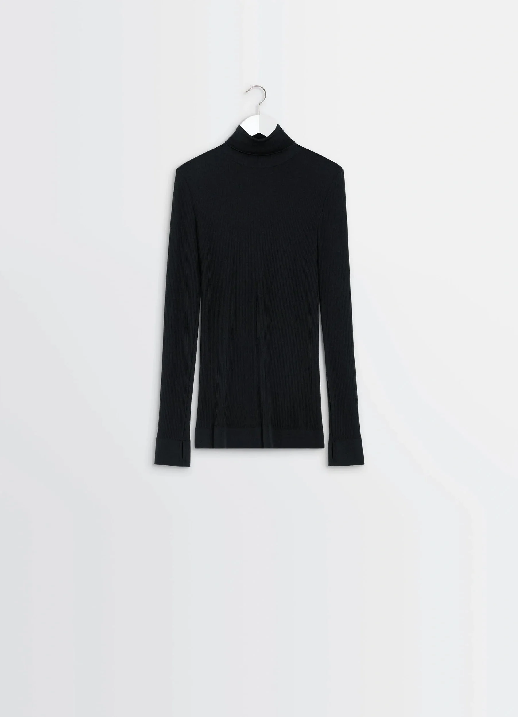This seamless top with high-neck collar is a Lemaire wardrobe essential. Crafted in finely ribbed merino wool, it is a lightweight piece whose knit was developed by EMO, a French manufacturer specializing in tubular garments. DETAILS Seamless high neck top in ribbed fine merino wool Fitted cut Long sleeves Cuffs with thumbhole Rib-knit trim Made in France Style : TO1460 LK1032 The model is 177 cm and is wearing a size 36 (S). FABRICS & CARE Main Material: 100% Wool