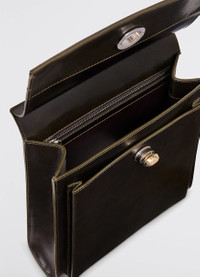 The Seed satchel is a new LEMAIRE bag which will carry your daily essentials in a practical gesture. Inspired by vintage satchels, the vertical style can host a large phone or a small book from day to evening, thanks to its inside zip and outside flat pocket. Both sturdy and rounded, it is crafted in fine Nappa leather - LWG Silver certified - with a bright vegetable tanning. Designed specifically for this style, a silver closure pays tribute to the Drop jewel line, adding a touch of light to the silhouette. This unisex bag is highly adaptable with its long strap and multiple adjustment holes, allowing it to be worn on the shoulder or cross-body. DETAILS - This bag can be worn on the shoulder or cross-body - Adjustable strap - Height of the strap: 35,5cm / 14in - Length: 25,5cm / 10in - Width: 7cm / 2,7in - Depth: 32cm / 12,6in - Inside zipped flap pocket - Silver twist closure Made in Spain Style: BG0107 LL0109 FABRICS & CARE Main Fabric: 100% Cow Main Lining 100% Sheep Do not wash Do not bleach Do not tumble dry Do not iron Professional leather clean only